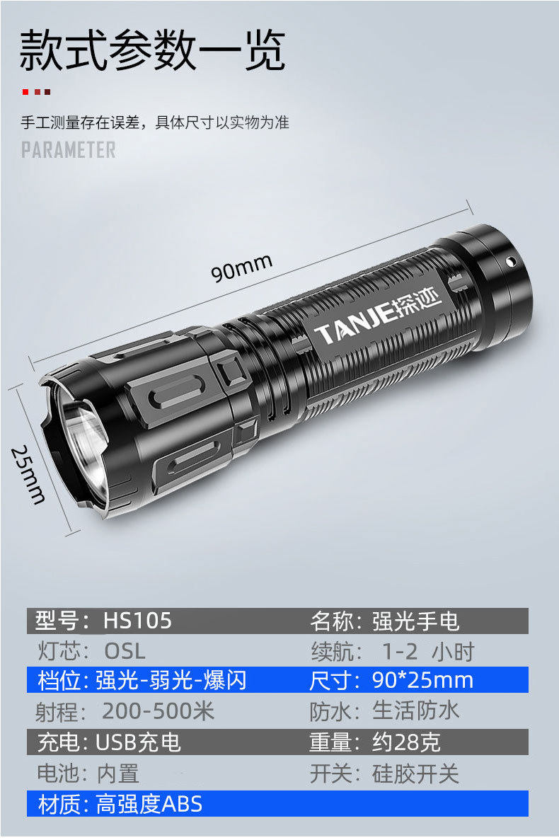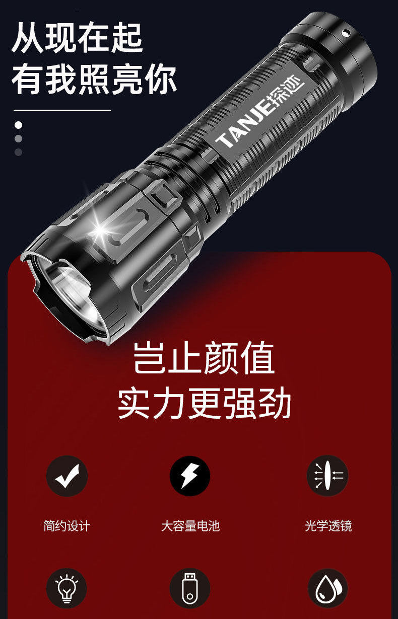 | Product Specifications | Flashlight + usb cable + plastic box |