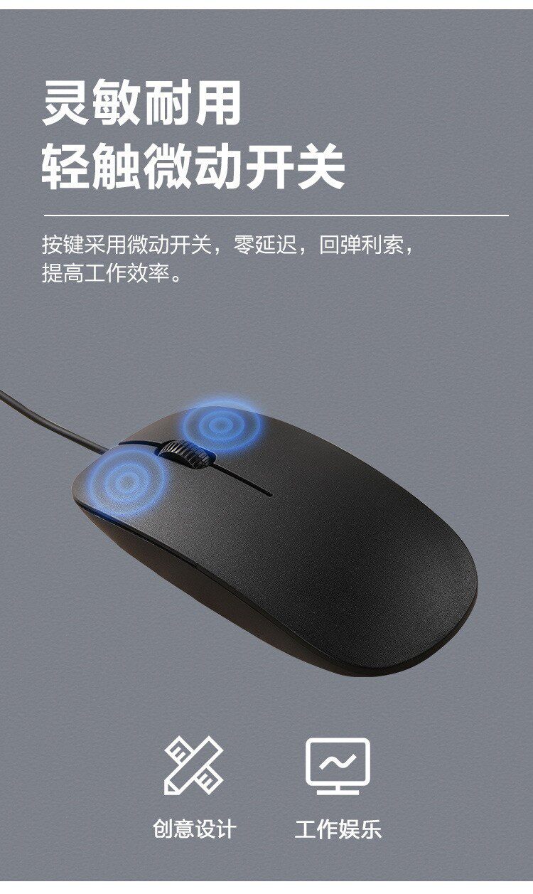 Spot simple business office mouse for Apple black and white neutral wired classic ultra-thin mouse factory wholesale