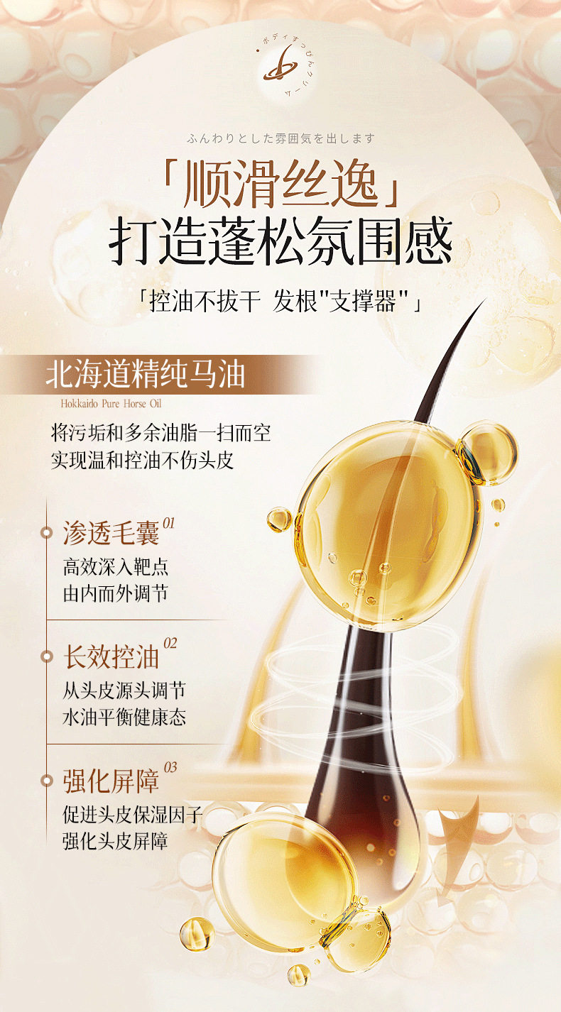 | Net content | Horse oil shampoo 600ml,Horse oil conditioner 600ml,Horse oil shower gel 600ml,Distribution contact customer service pricing ha |