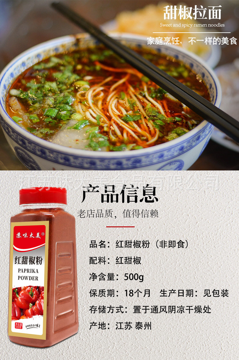 Red sweet pepper powder 500g sweet red pepper powder Pickles coloring chili powder Western food baking seasoning manufacturer