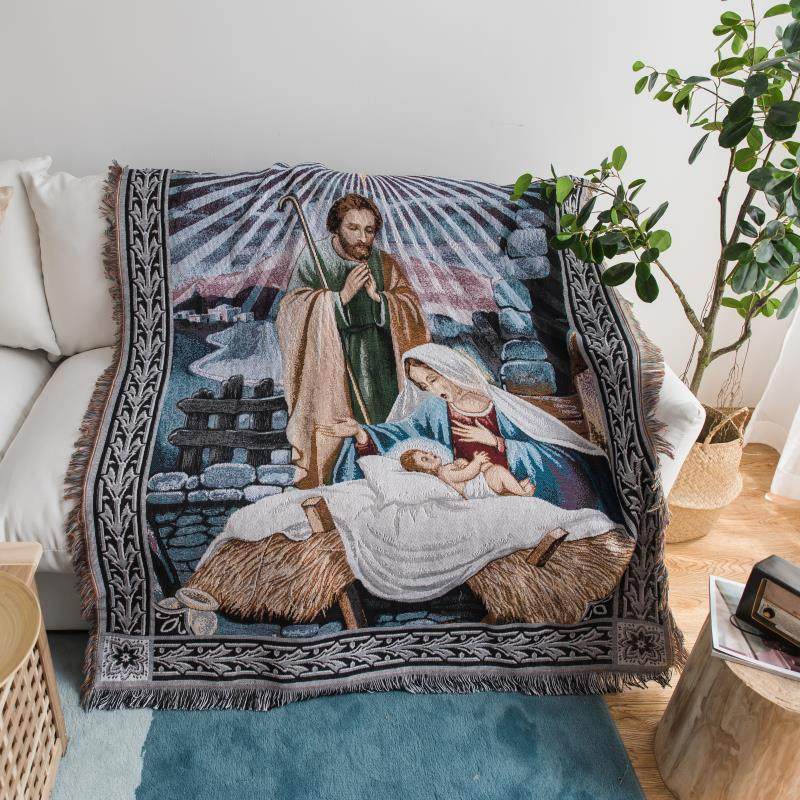 Export Israel Prayer Tapestries Knitted Tassel Blanket Middle East Popular Sofa Cover Blanket Background Wall Decorative Blanket