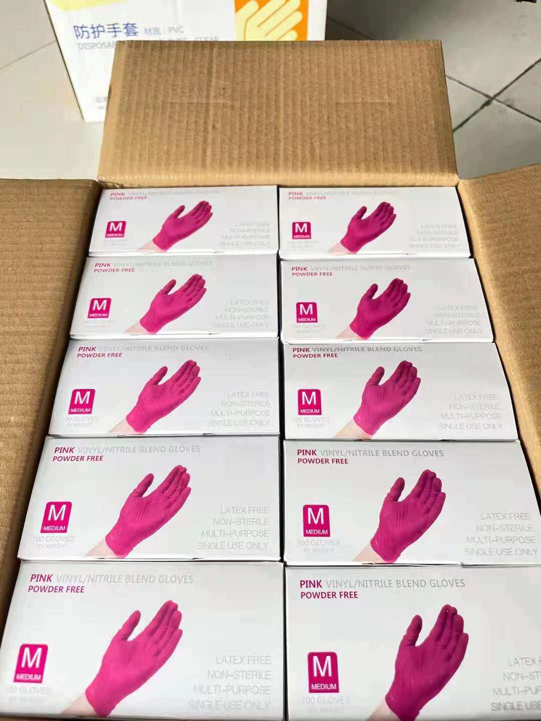 Wanli disposable pvc gloves pink gloves high elastic synthetic protective gloves food grade powder-free 100 boxes