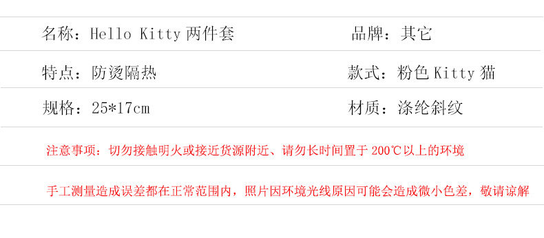 Hello Kitty Cat Heat Insulated Microwave Gloves Mat Set Kitchen Animal Oven Baking Gloves