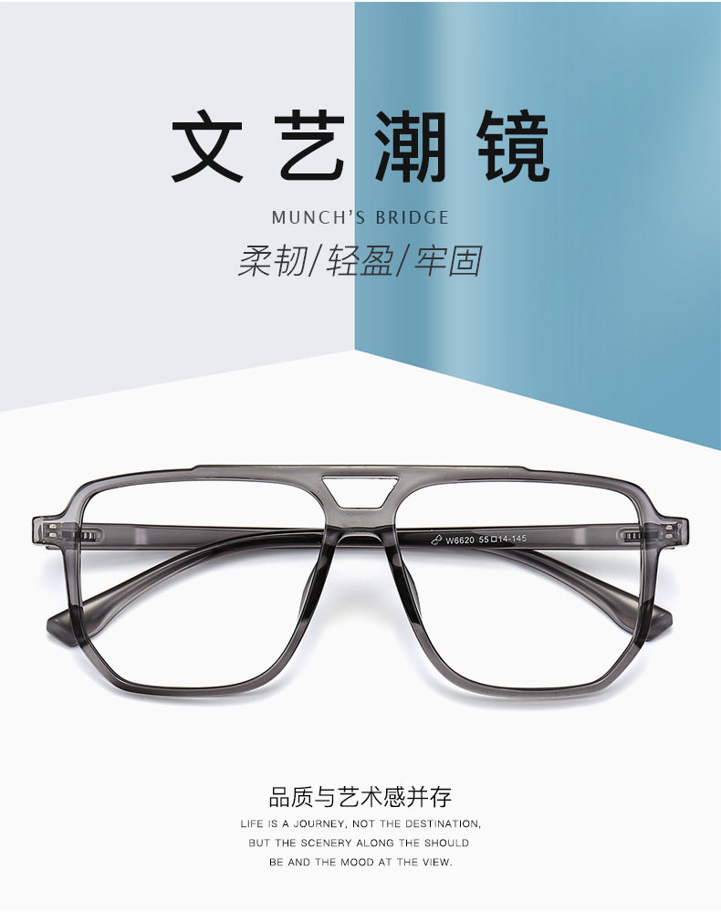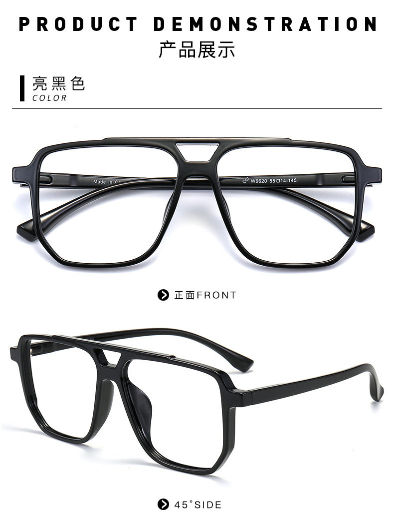 New tr90 Internet celebrity ins fashion double beam glasses frame men and women same fashion large frame myopia plain glasses round face