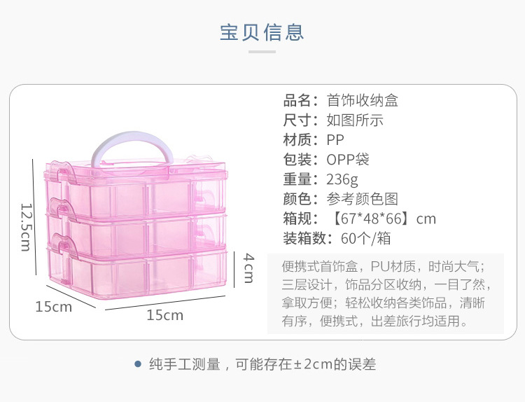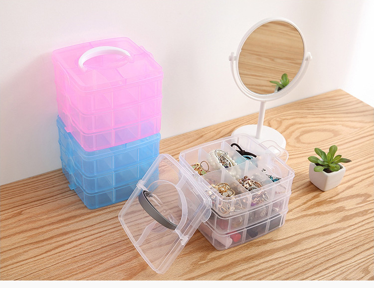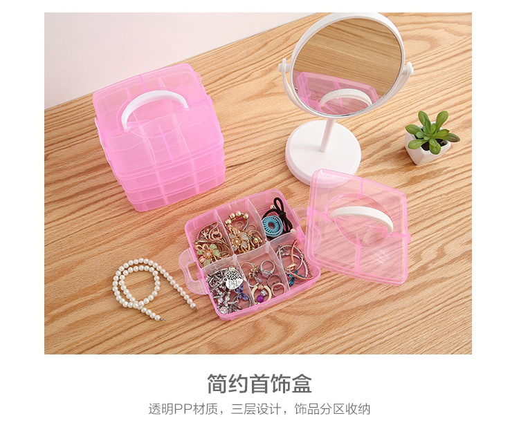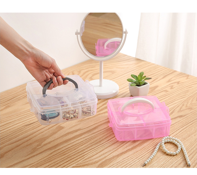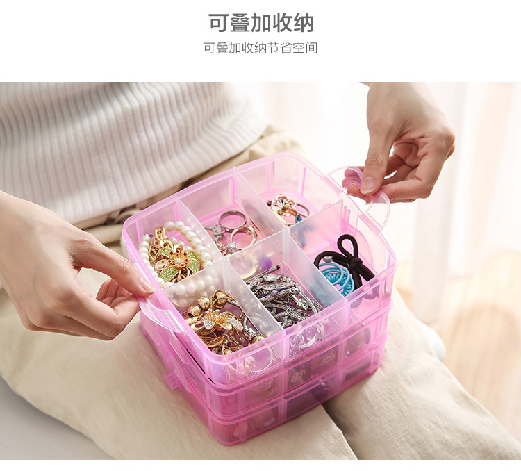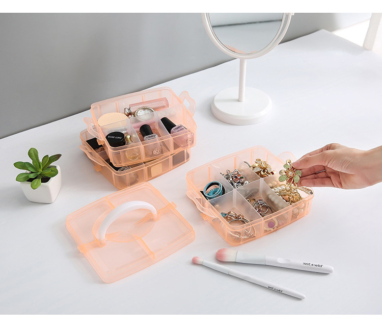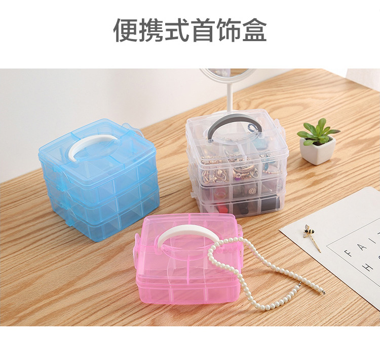 Storage Box Plastic Satchel Detachable Jewelry Storage Box Three-Layer Detachable Transparent Cosmetics Storage Box Wholesale