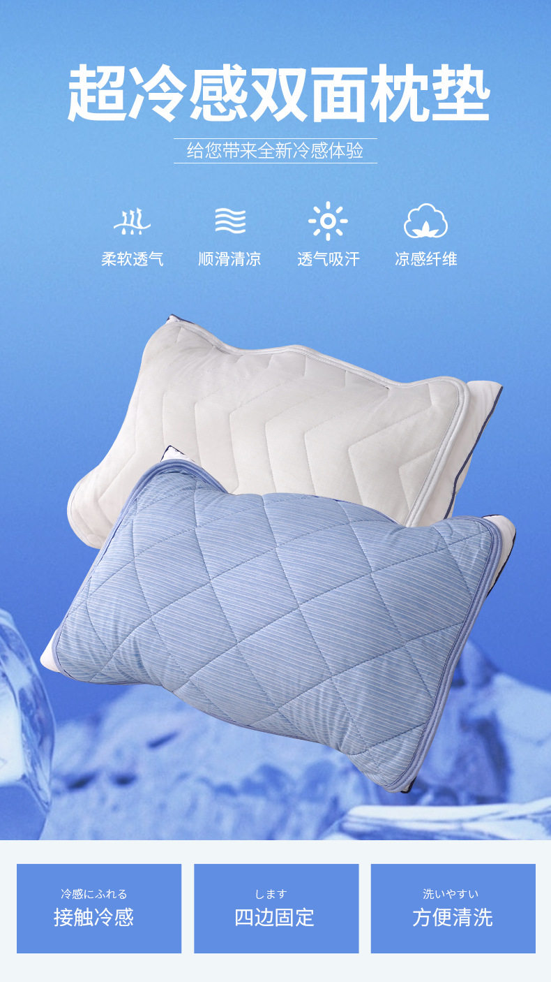Export to Japan Cold Pillow Cushion Summer Cool Pillow Case Ice Silk Double-sided Non-slip Soft Breathable Pillow Towel