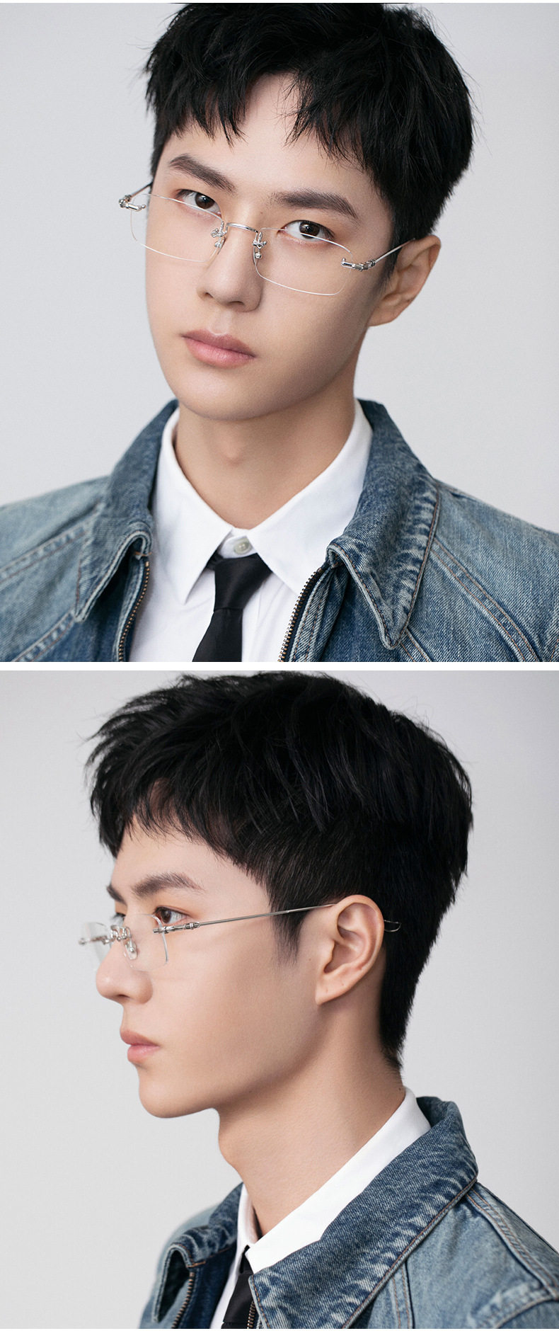 Wang Yibo's super plain and frameless myopia glasses men's fashion net can be equipped with degree eyes frame women