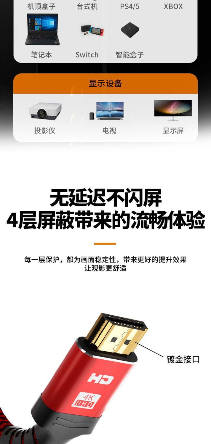 Amazon Explosions HDMI Braided Line 2.0 Edition High Definition Computer TV Projector Audio and Video Signal Connection Line