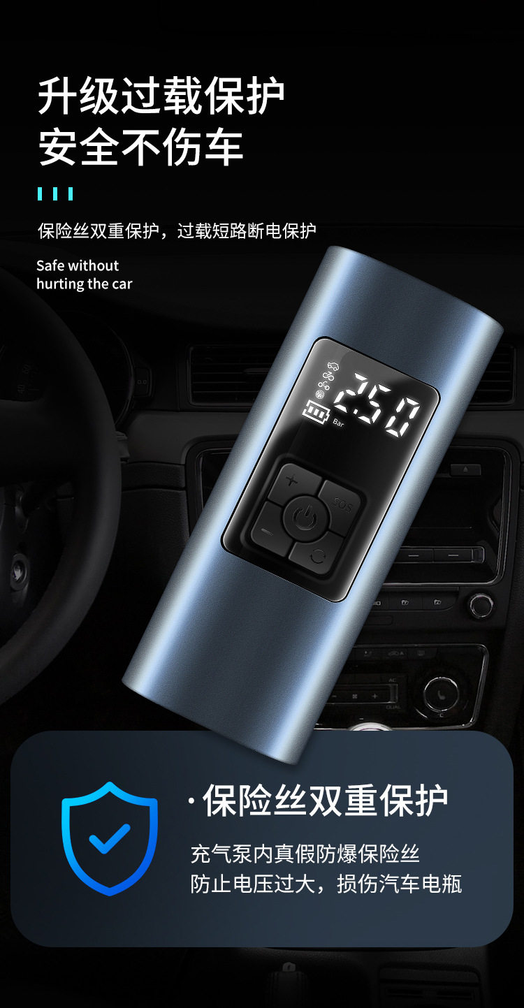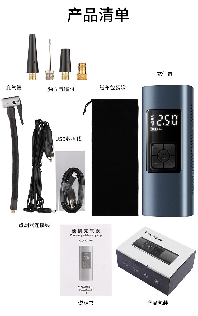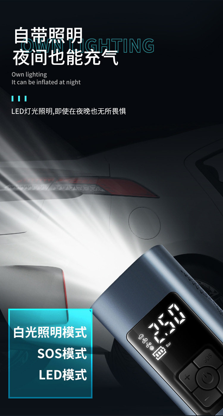 Cross-border hot sale wireless portable smart car air pump digital display air pump car electric air pump