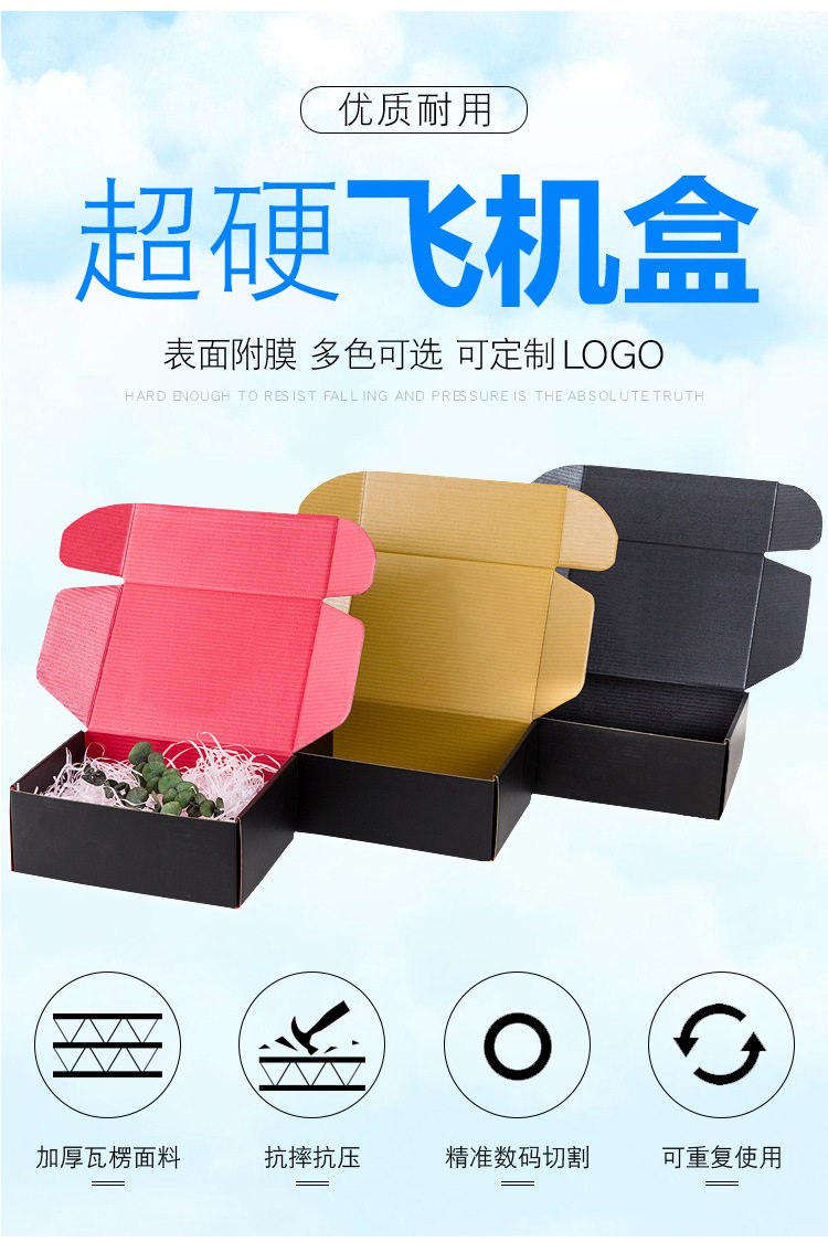 Waterproof Laminated Packaging Rectangular Colorful Extra-Hard Airplane Box Women's Clothing Color-Printed Logistics Express Box Carton