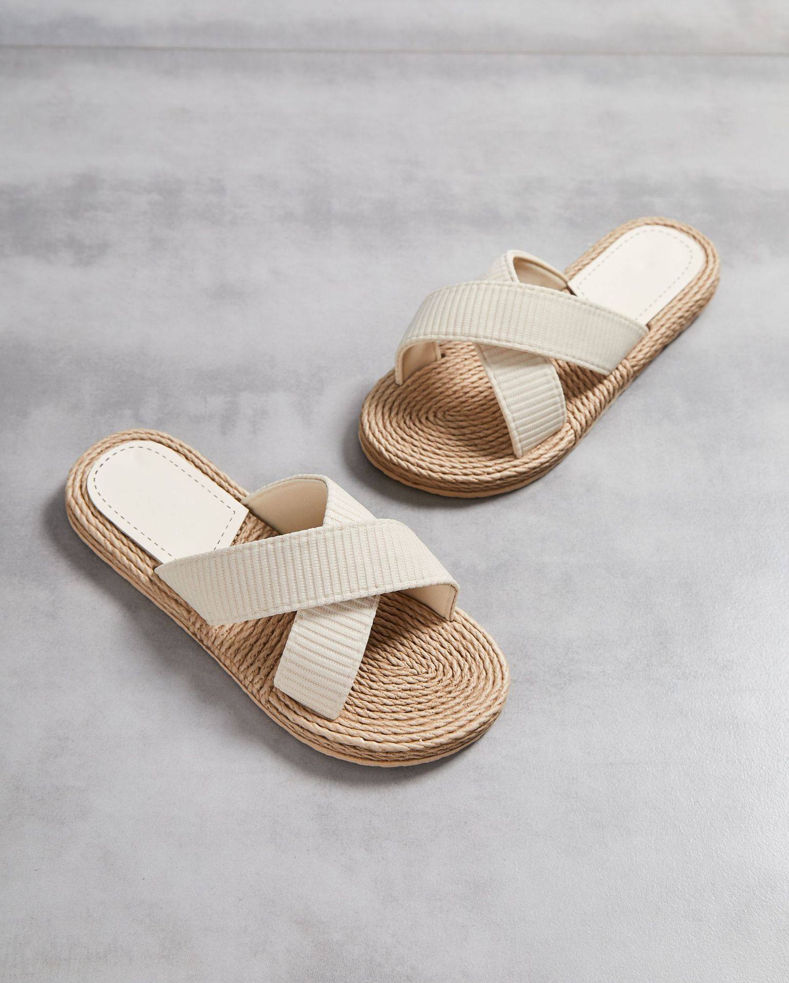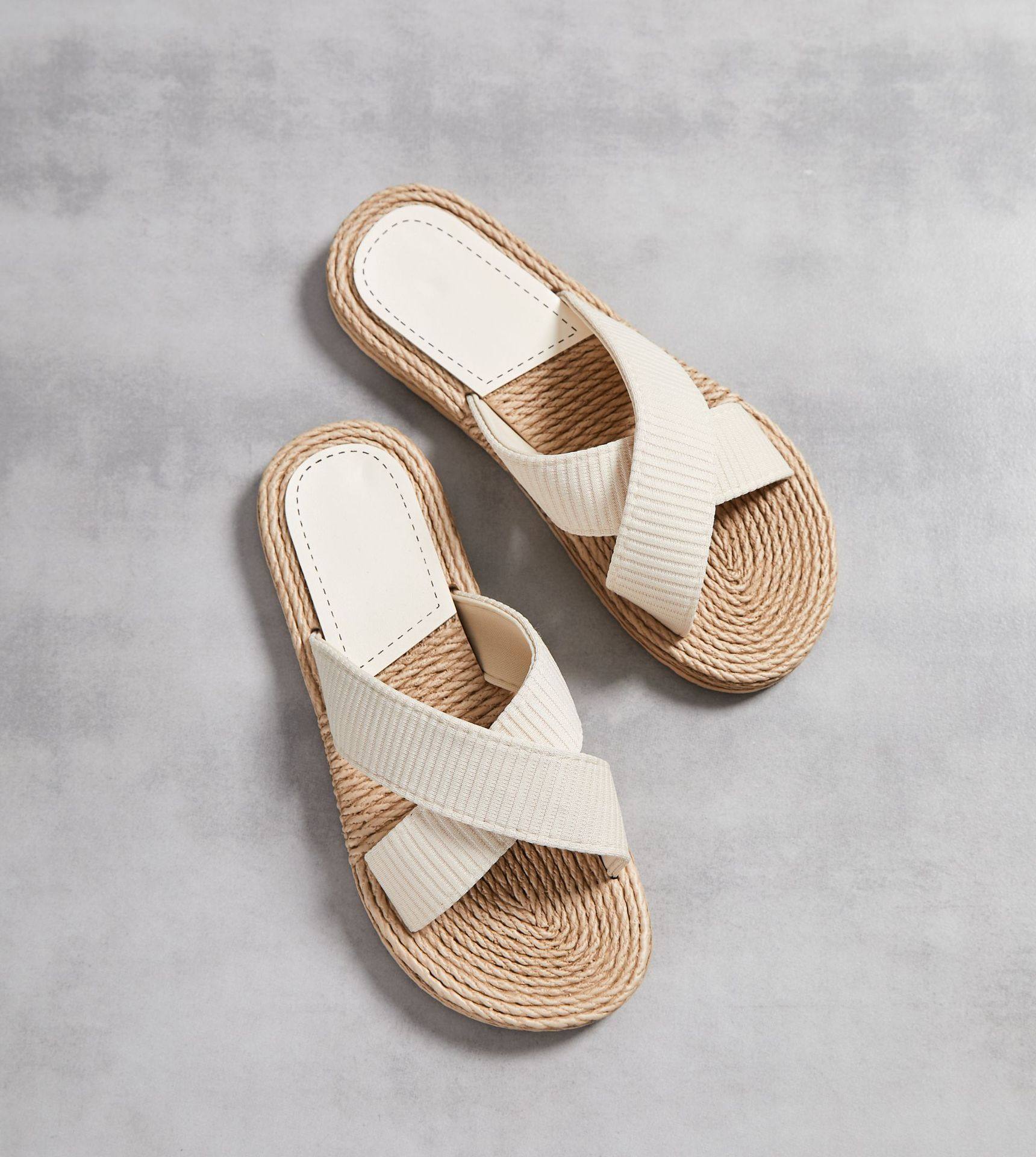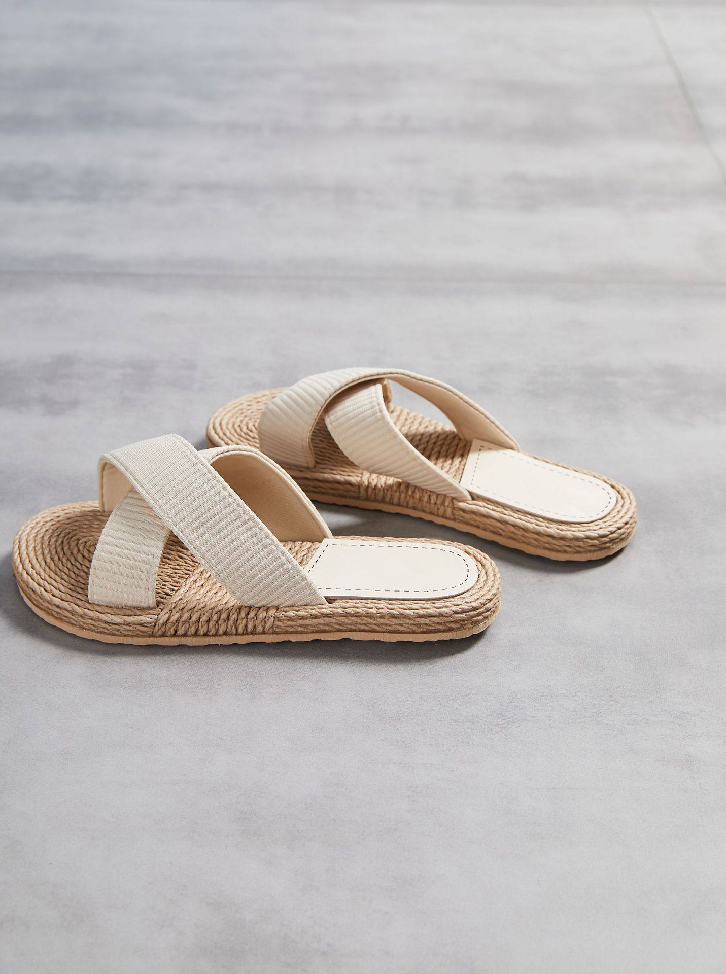 Women's one-word slippers hemp rope straw summer new outdoor cross slippers flat heel set feet