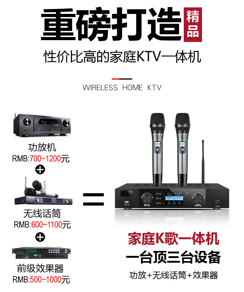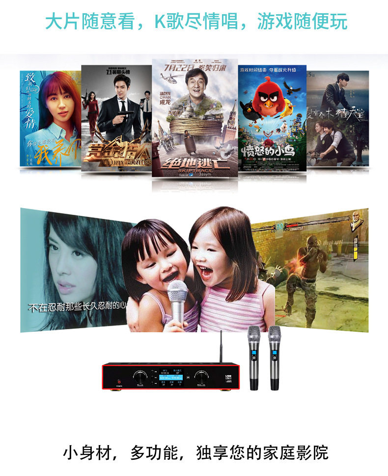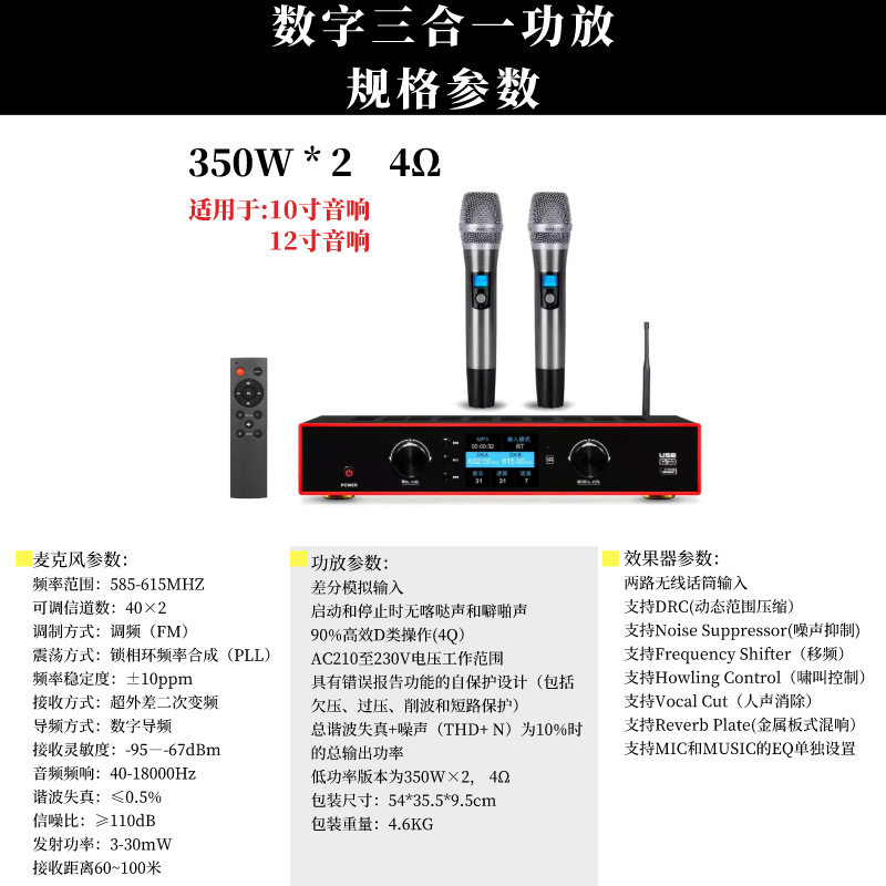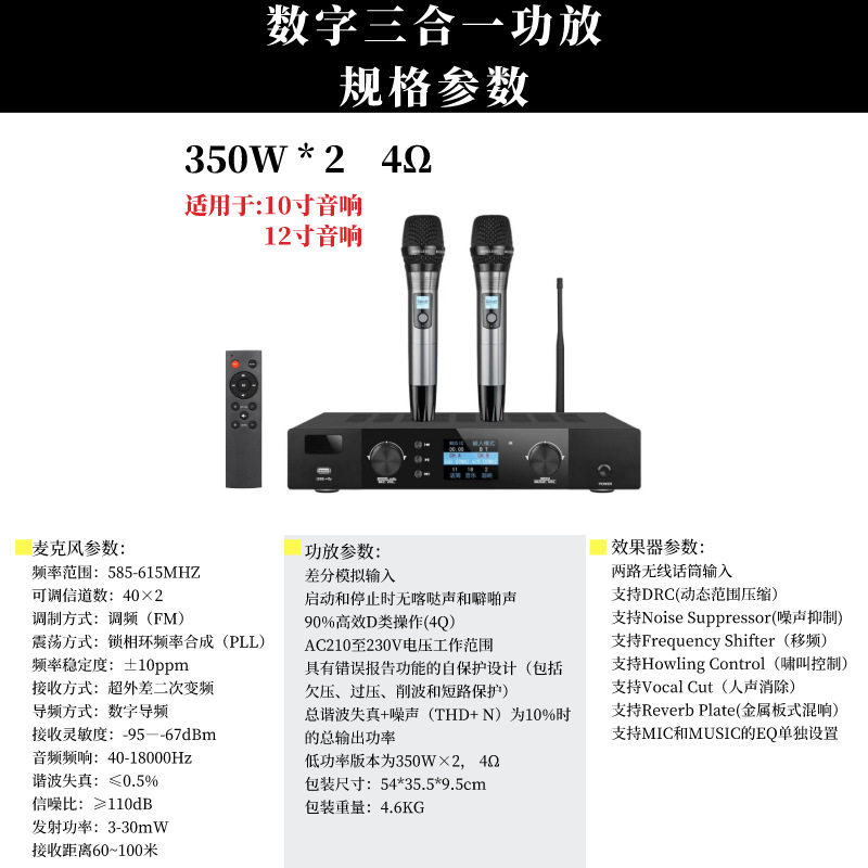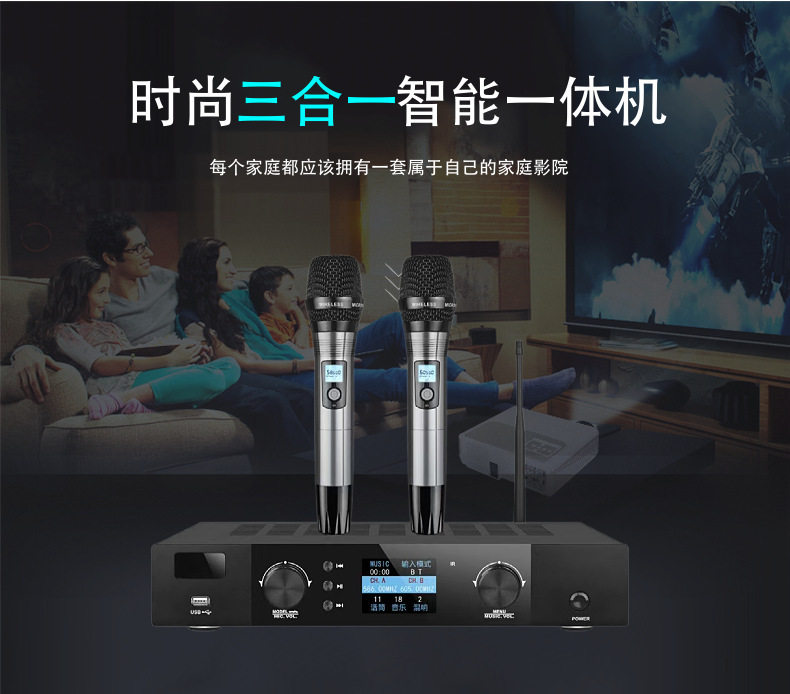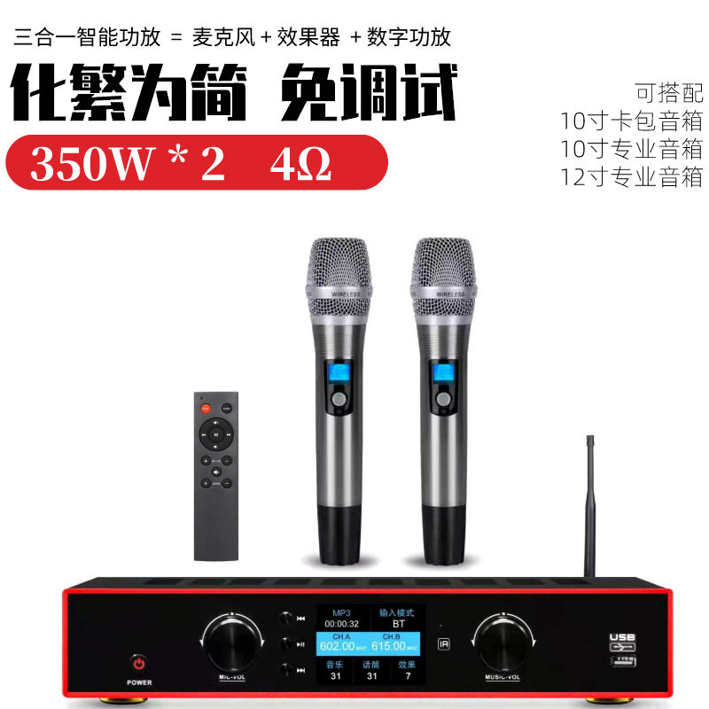 Three-in-one intelligent power amplifier digital dual-channel amplifier microphone all-in-one home theater microphone suit