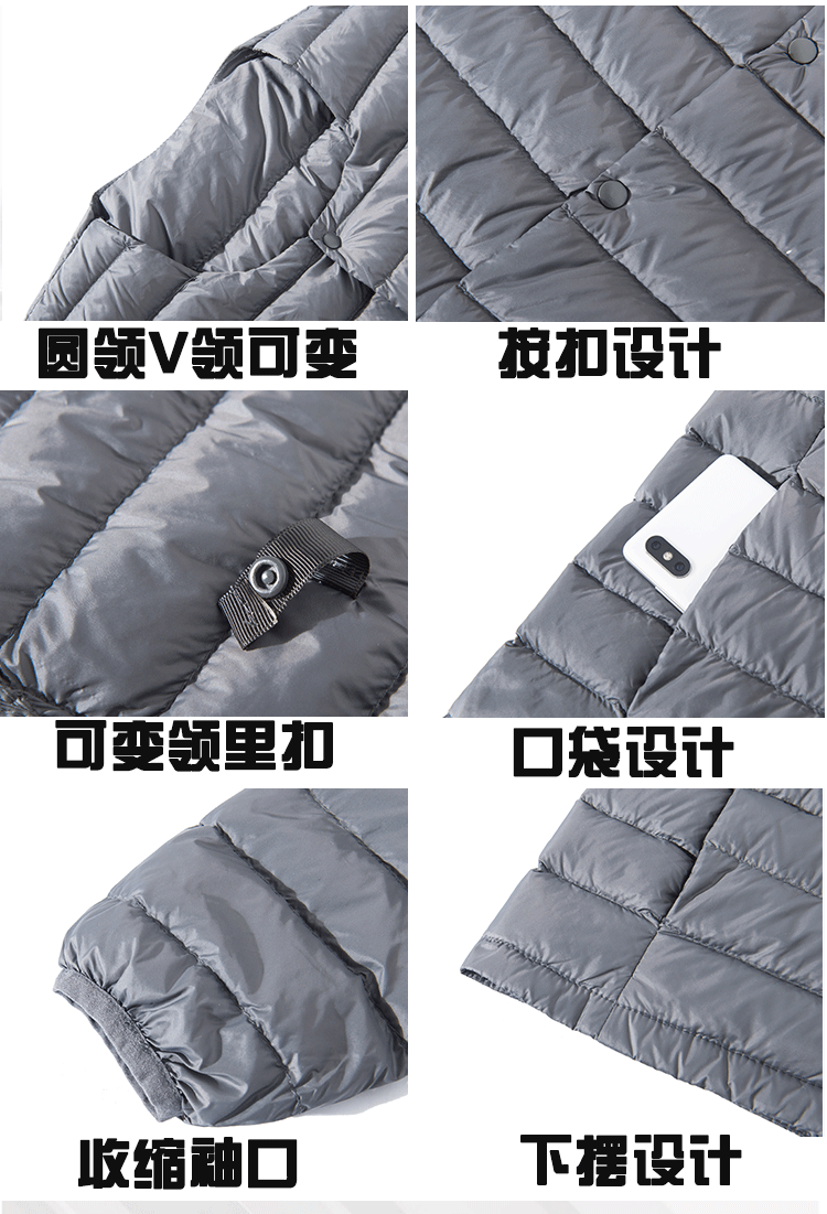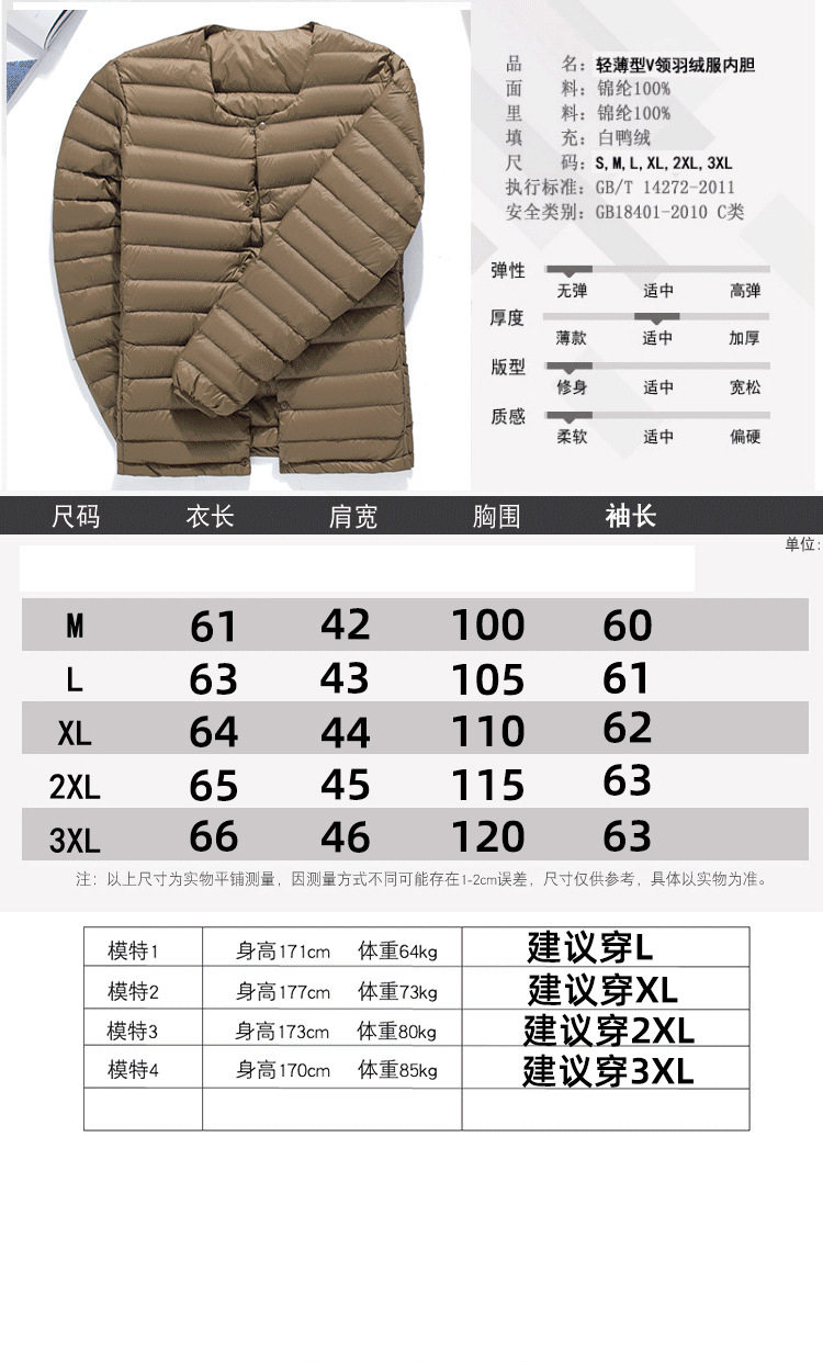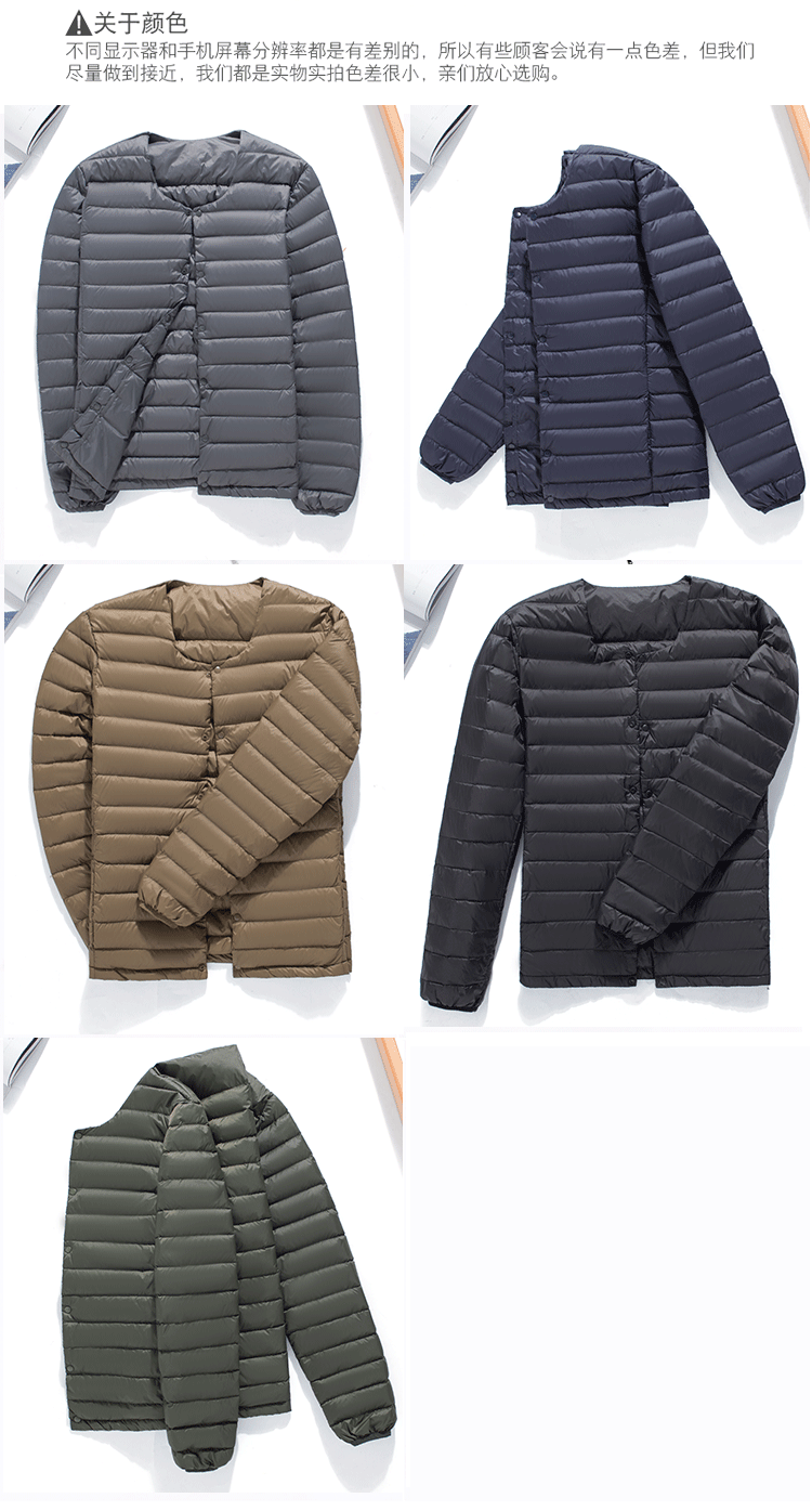2024 New Lightweight down Jacket Men's Collarless down Warm Liner Large Size Inner Wear Round Neck V-Neck Thin Style
