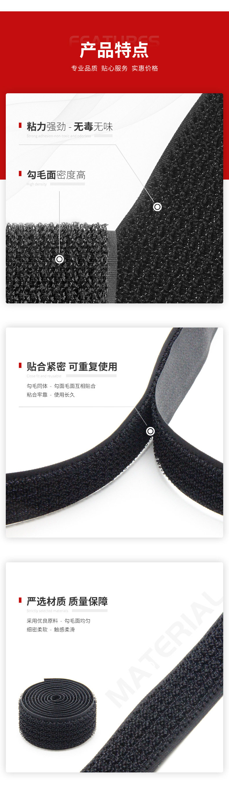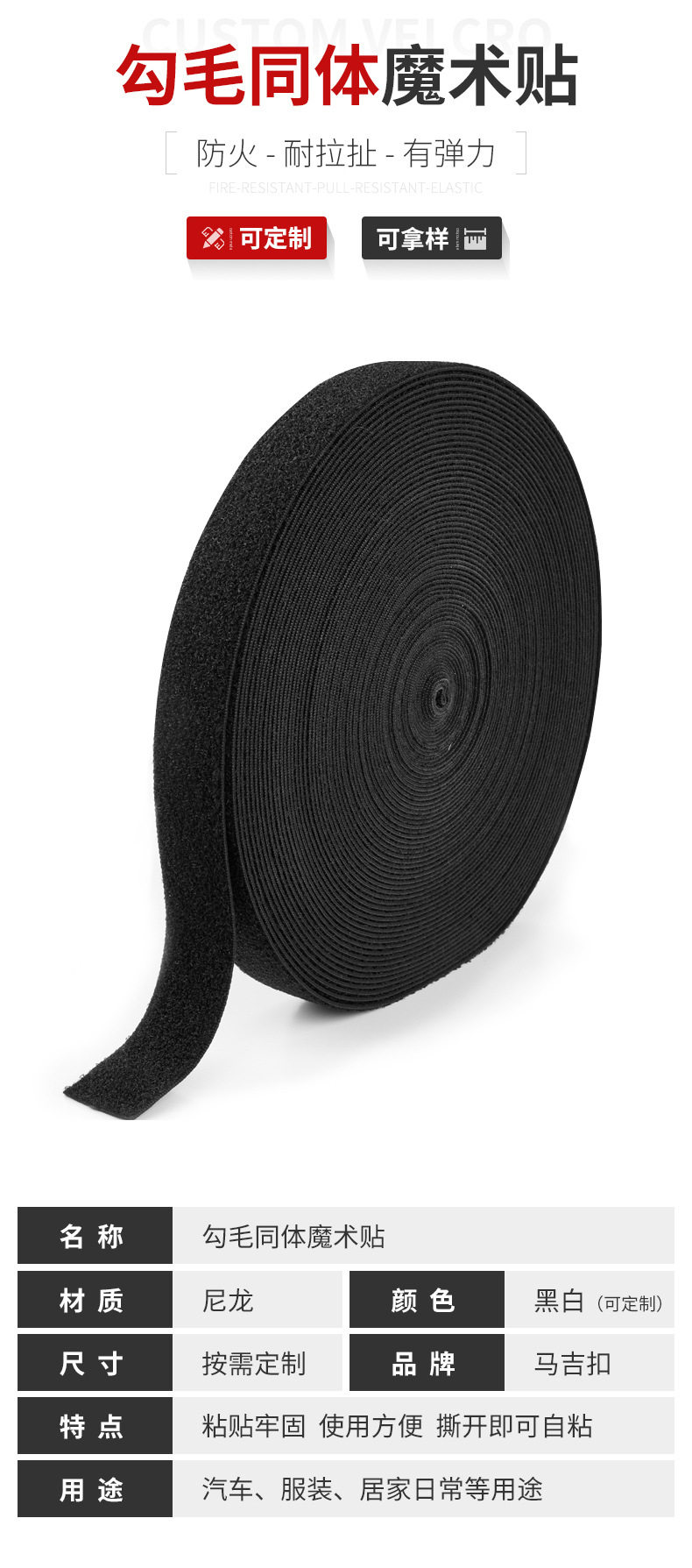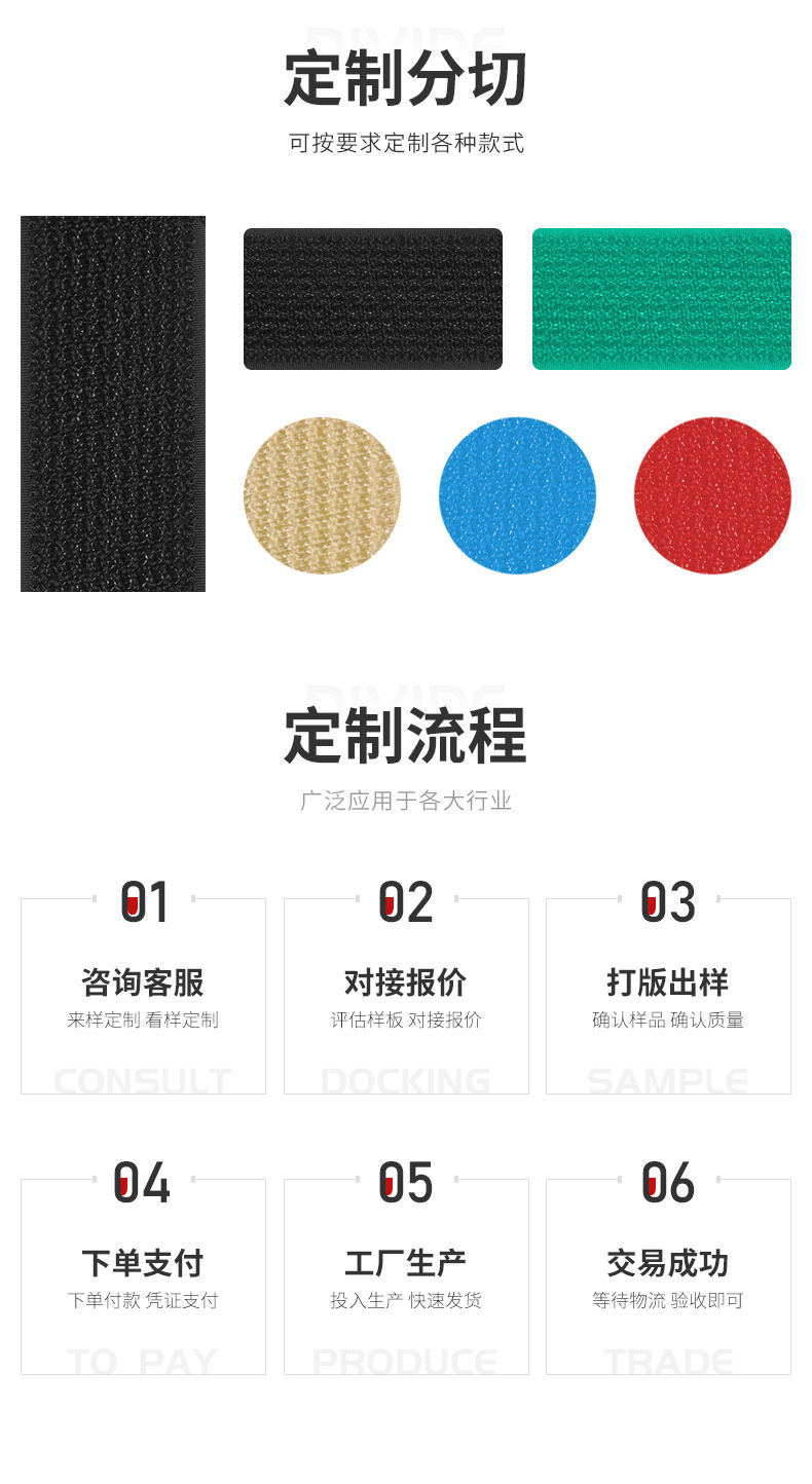 | Scope of application | Shoes,Packaging,Backpack,Clothing,Maternal and Infant Supplies,Headphones,Accessories,Home Textile,Strap,Screen window,Sofa cushion,Clothing,Medical Supplies,Moxibustion,Cord management belt,Car seat,Children's intelligence development,Sphygmomanometer arm belt,Industrial use |