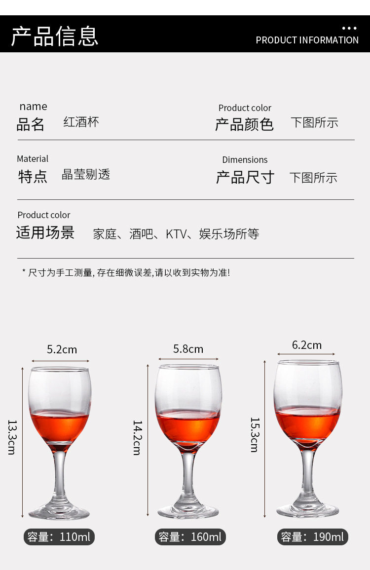 Creative Household Glass Goblet Large small size Champagne Wine Glass Cocktail Glass Brandy Glass Red Wine Glass