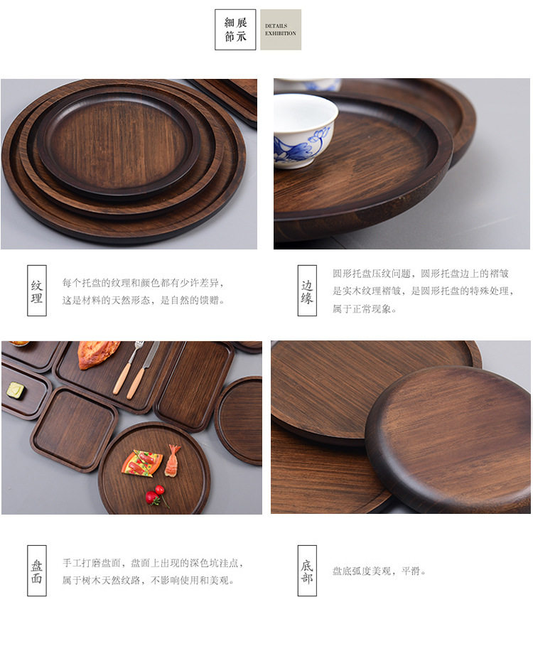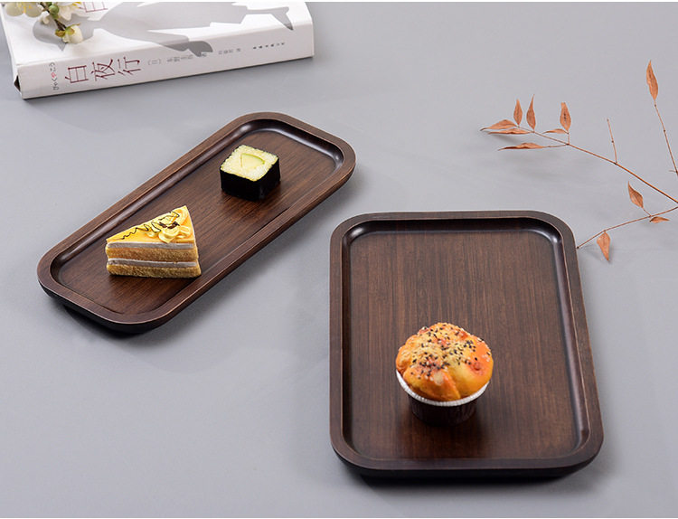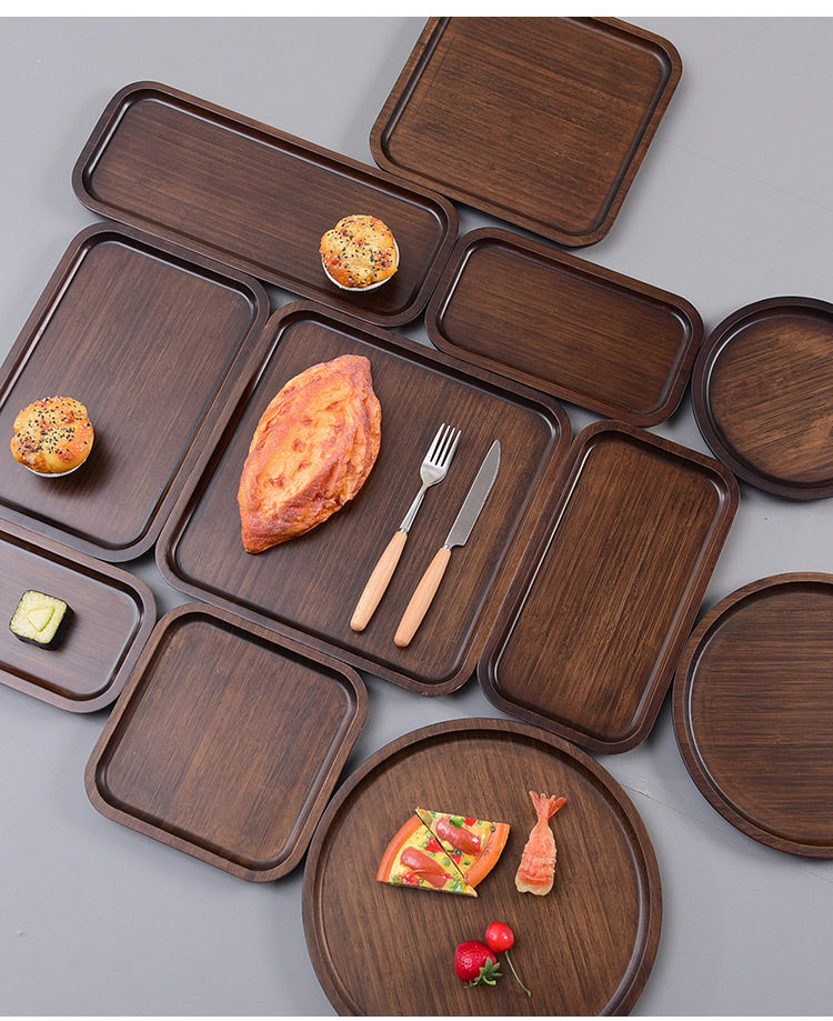Wooden Tray Creative Pizza Bamboo Tea Tray Walnut Color Japanese Style Rectangular Household Cake Solid Wood Water Cup Plate