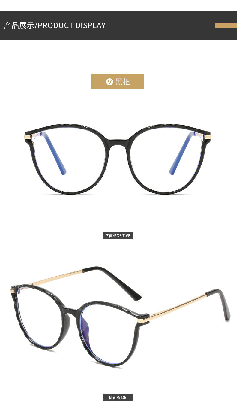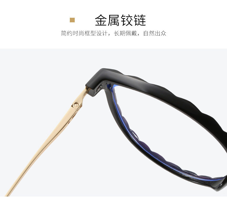 TR Glasses Anti-blue Glasses Metal Frame Wave Pattern Large Square Frame Fashionable Flat Glasses Student Myopia Glasses
