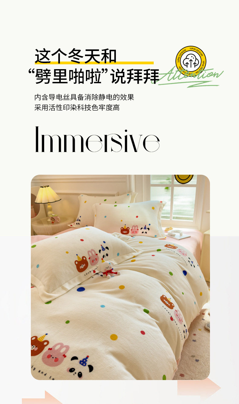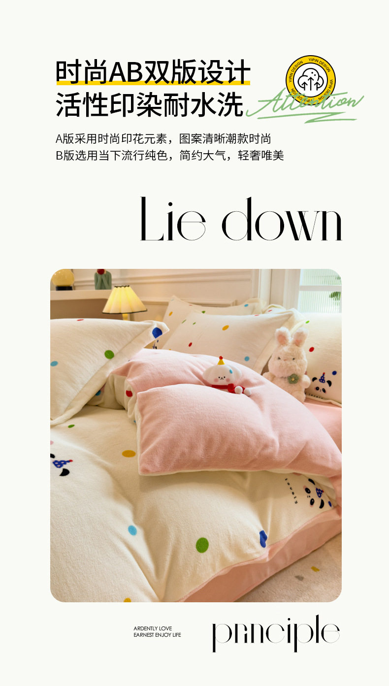 Ins Thickeneded Milk Velvet Four-Piece Winter Fleece-Lined Quilt Cover French Velvet Dormitory Three-Piece Fitted Sheet Wholesale Delivery