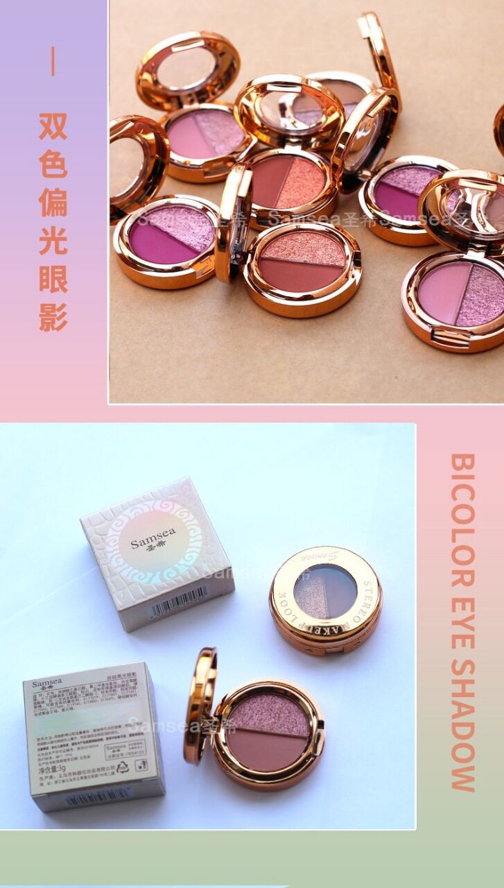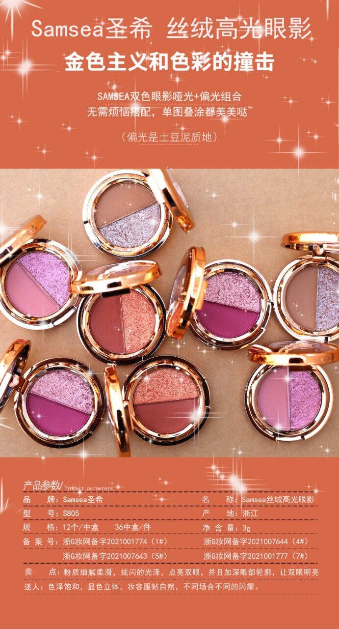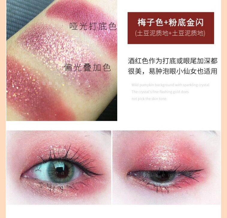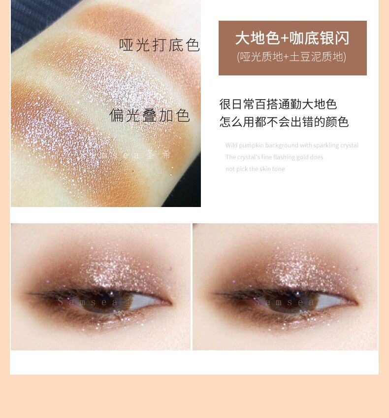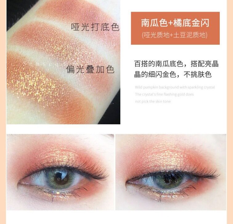 Samsea Shengxi Double Color Eye Shadow Pumpkin Color Earth Color Mashed Potato Matte Orange Base Golden Shine Cafe Base Silver Shine