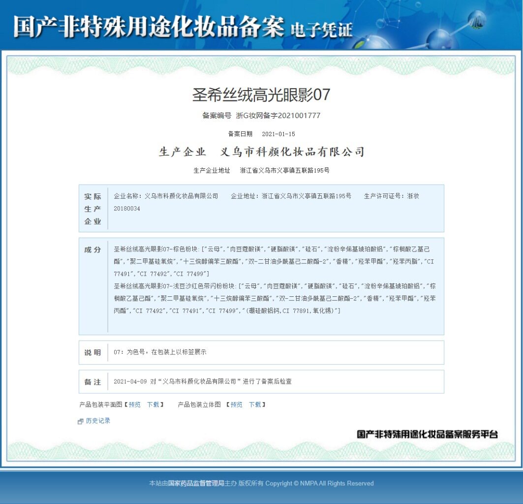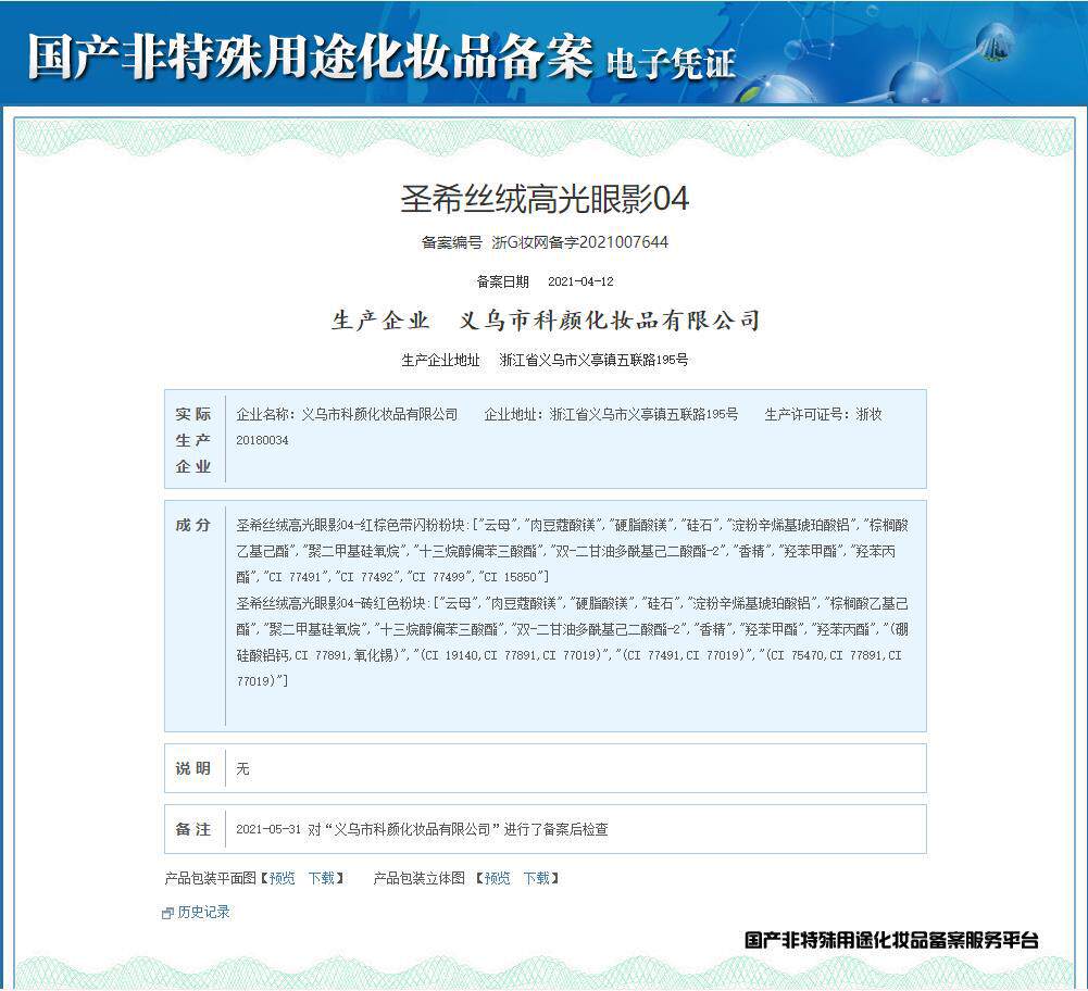 | Non-special cosmetics record certificate number | Zhejiang G makeup net preparation word 2021001777 |