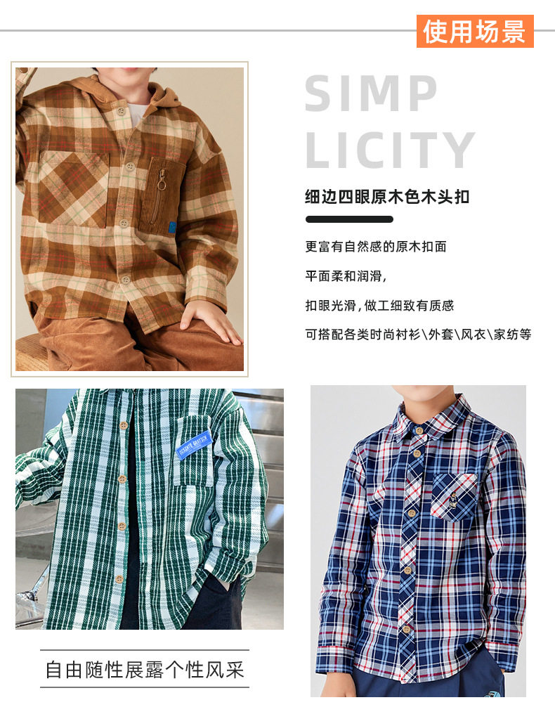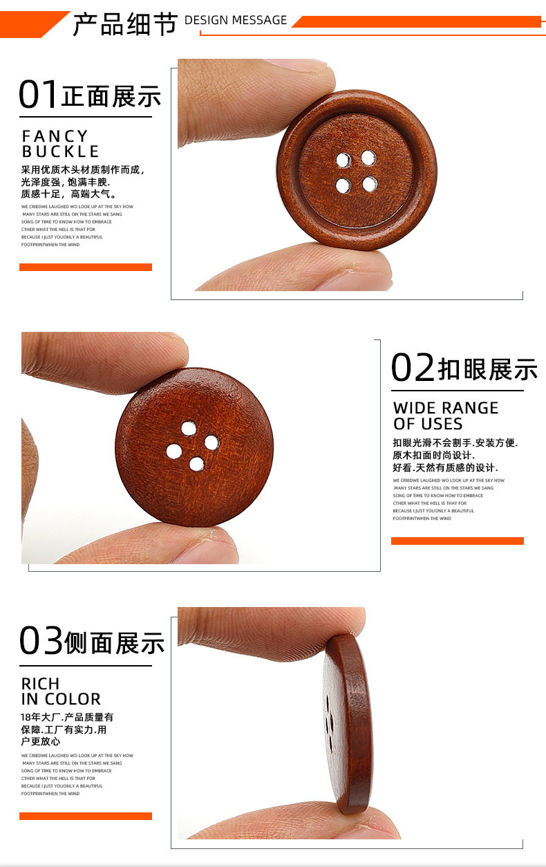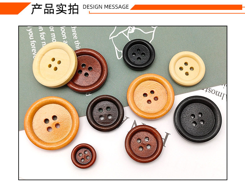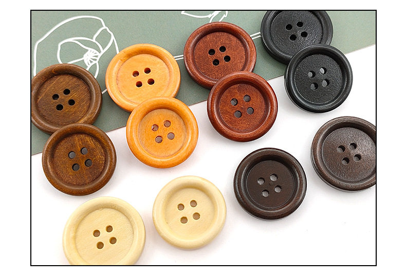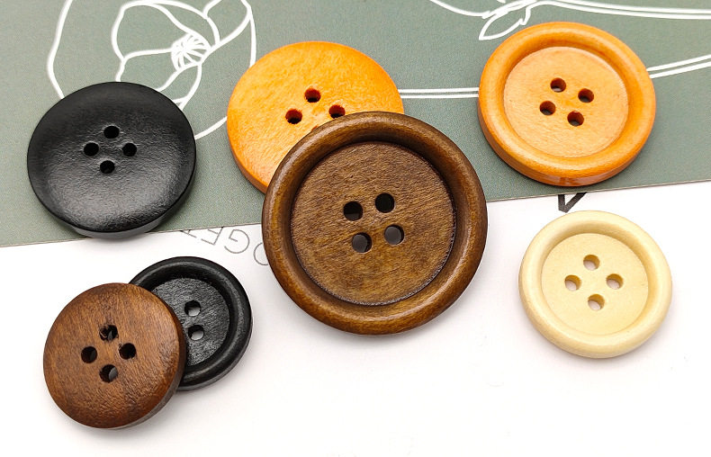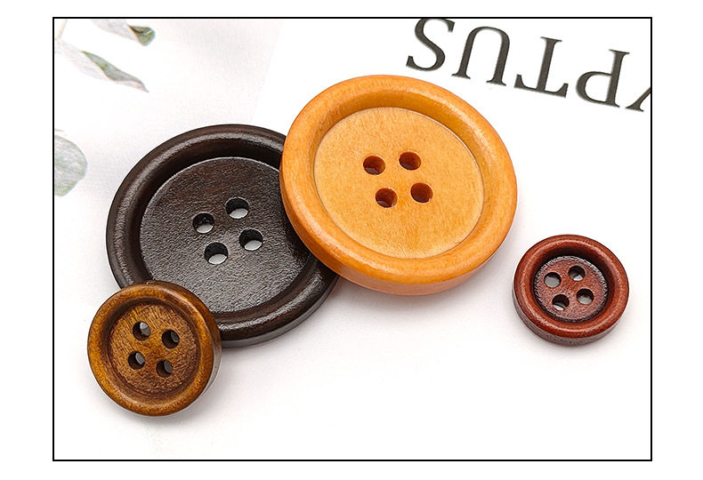 Wooden Buttons, Round Thin-Edged Four-Eye Clothing Accessories, Buttons, Decorative Accessories, Coats, Windbreakers, Jackets, Wooden Buttons