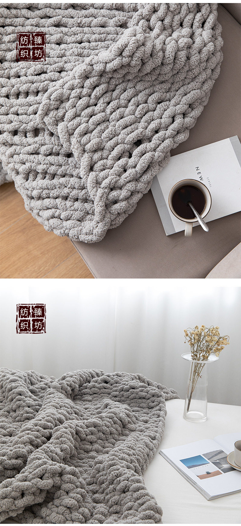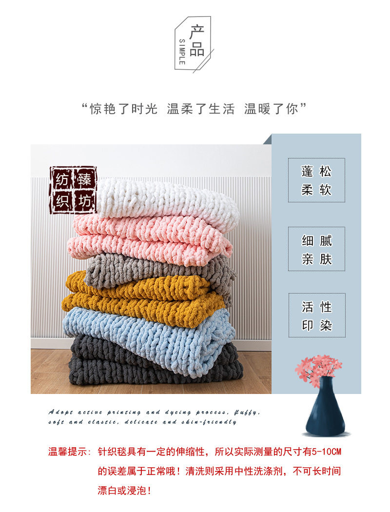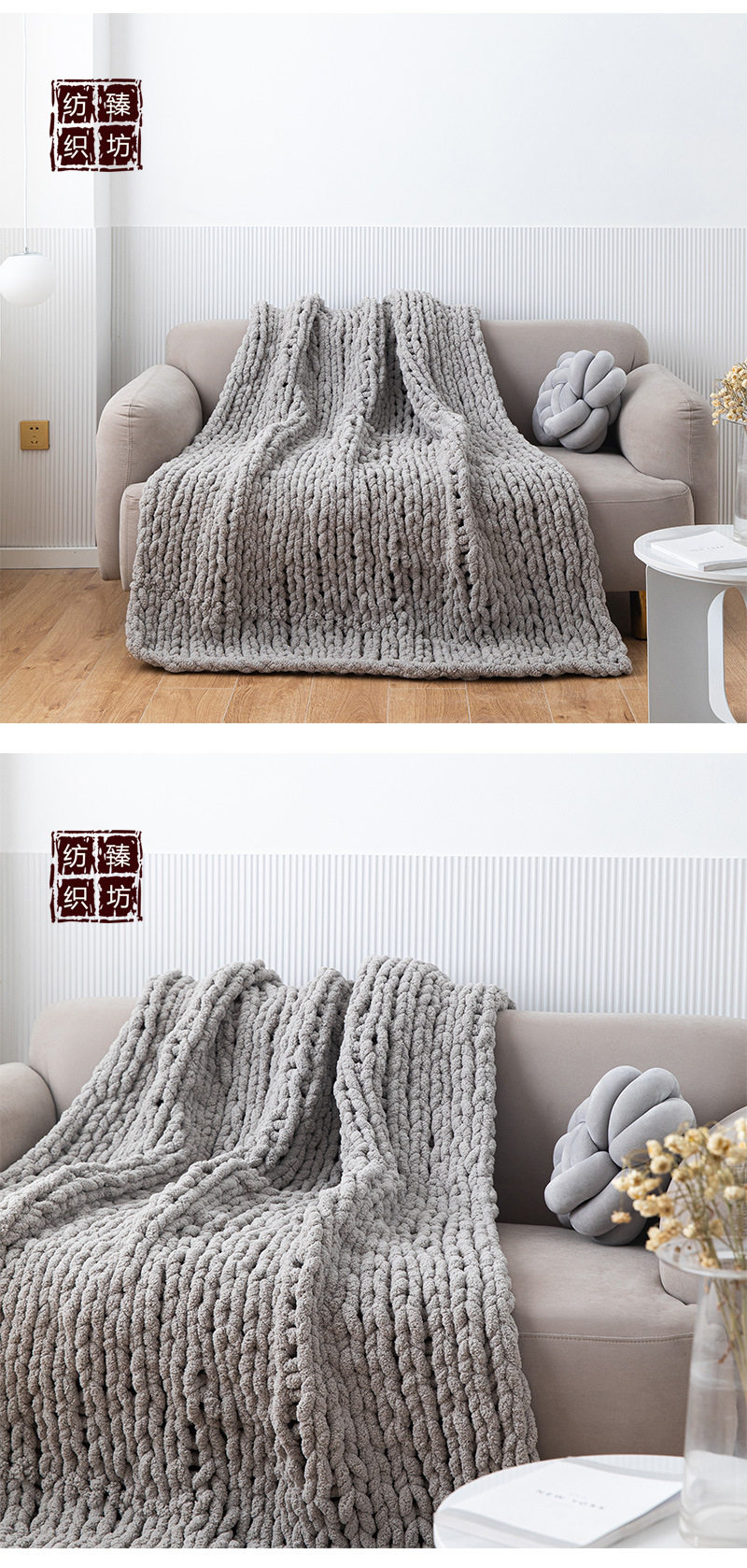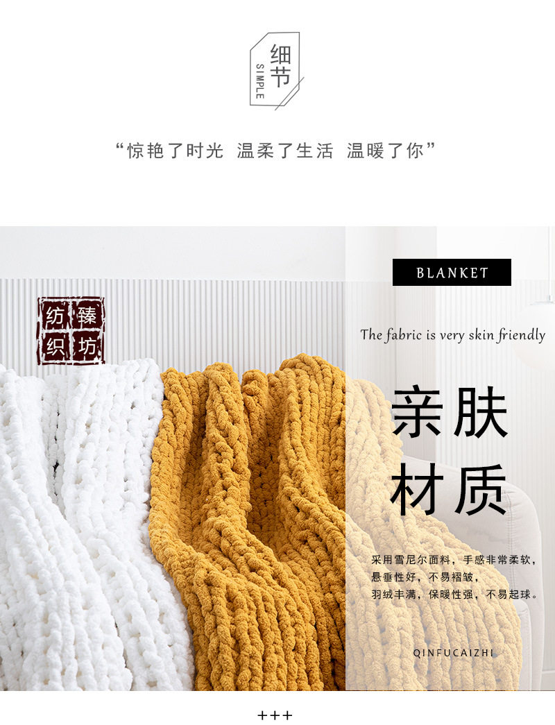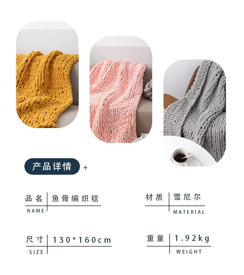 Handmade Thick Thread Blanket, Simple Woven Fishbone Style Knitted Blanket, Bedroom Sofa Cover Blanket, Air-Conditioned Lunch Blanket and Towel Home