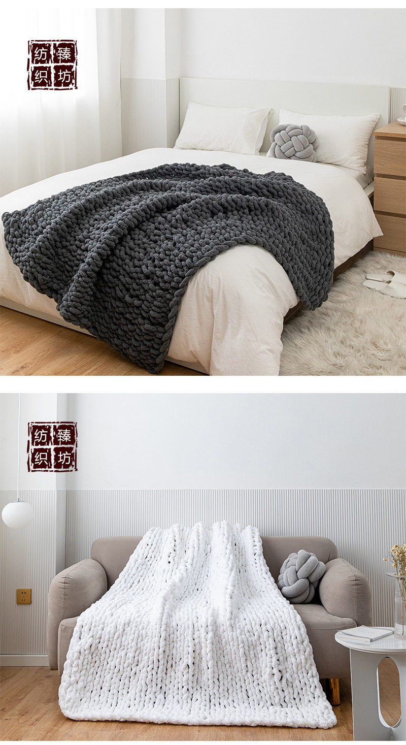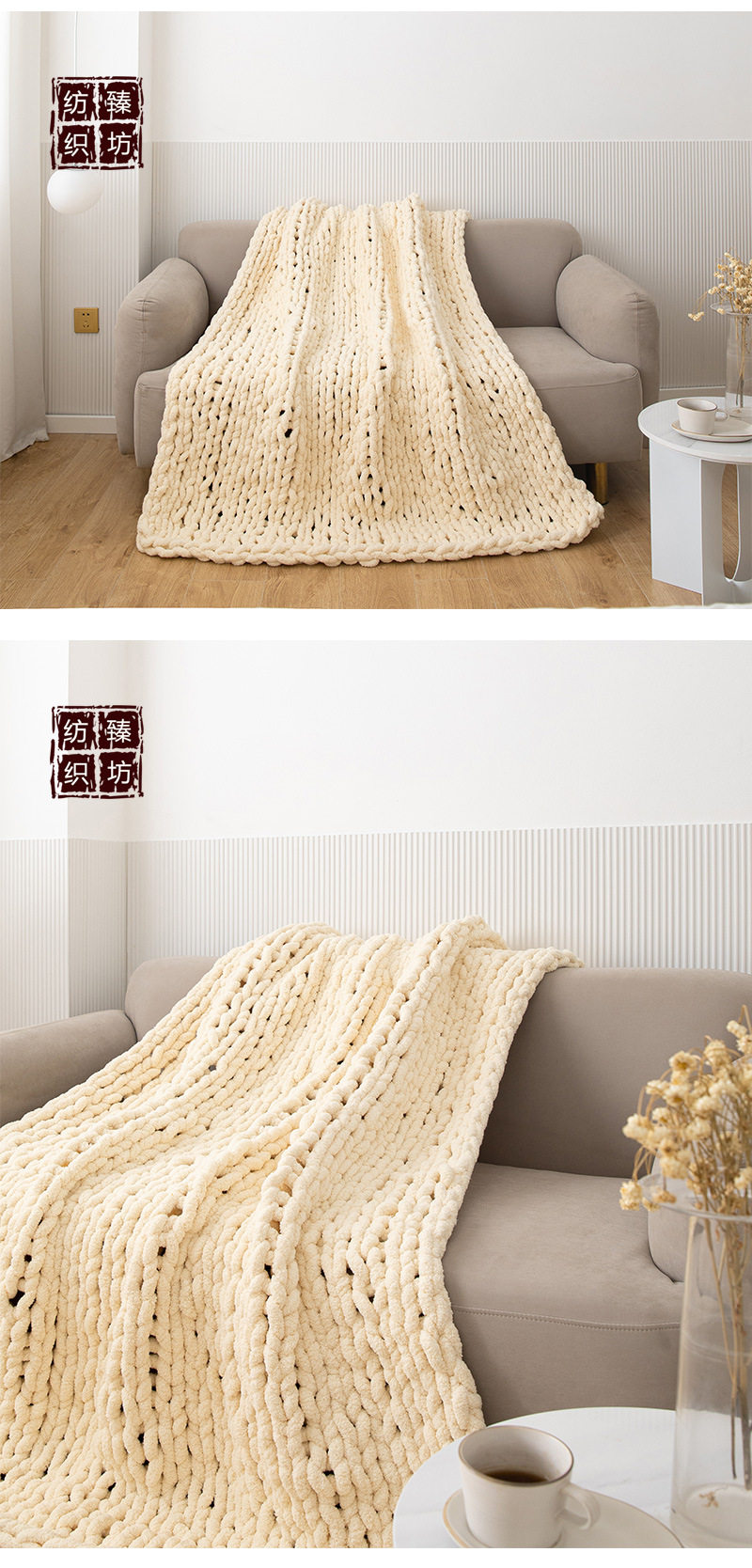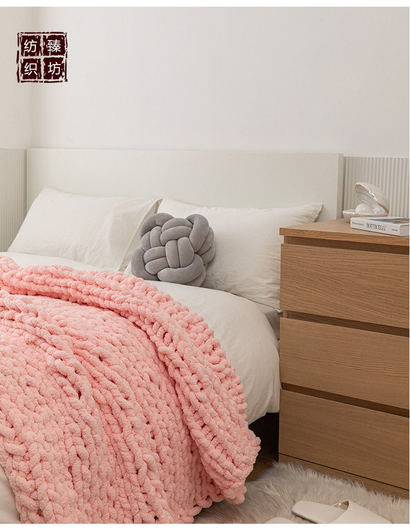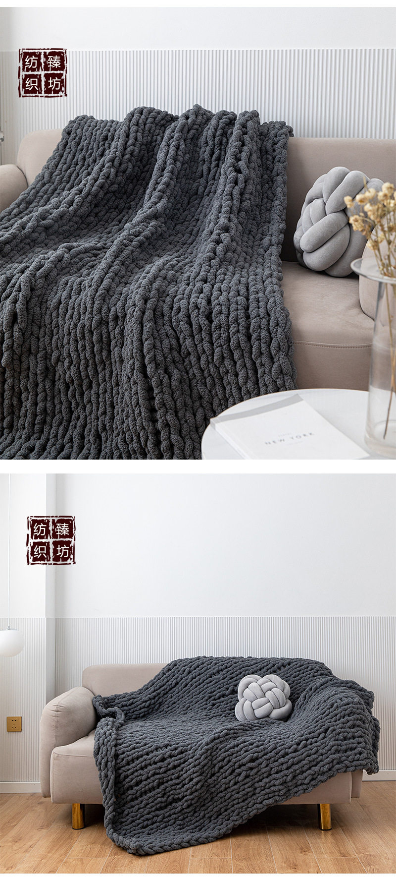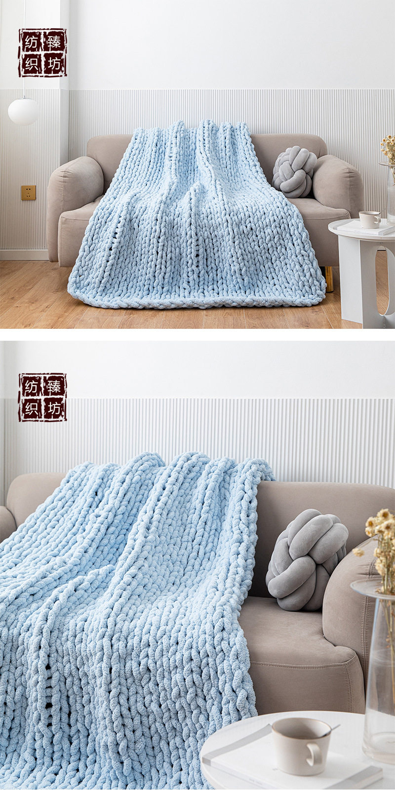 Handmade Thick Thread Blanket, Simple Woven Fishbone Style Knitted Blanket, Bedroom Sofa Cover Blanket, Air-Conditioned Lunch Blanket and Towel Home
