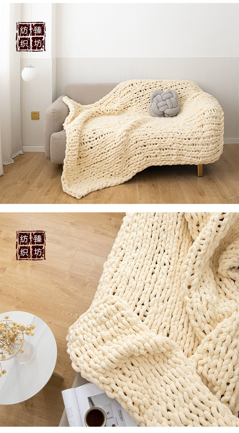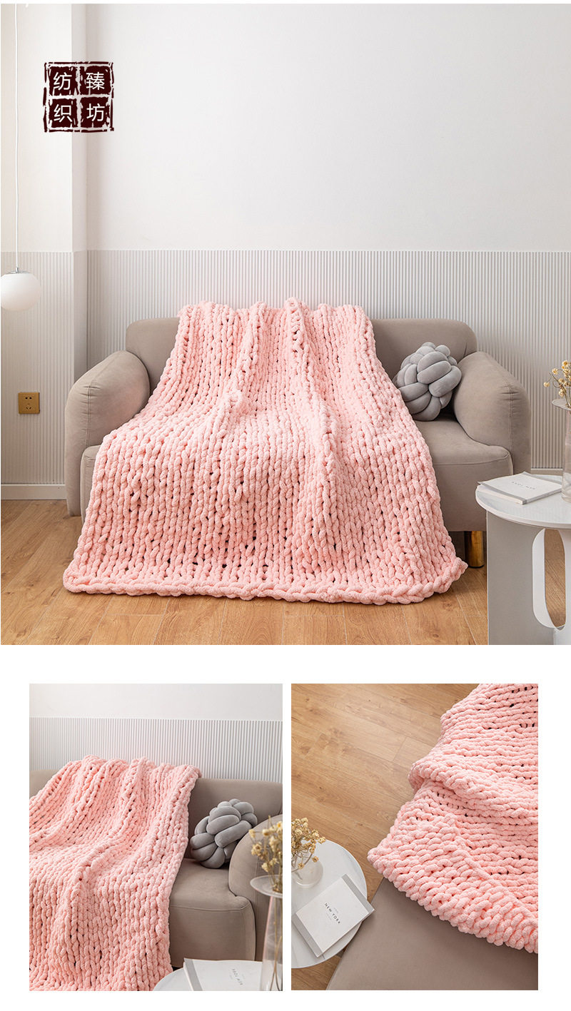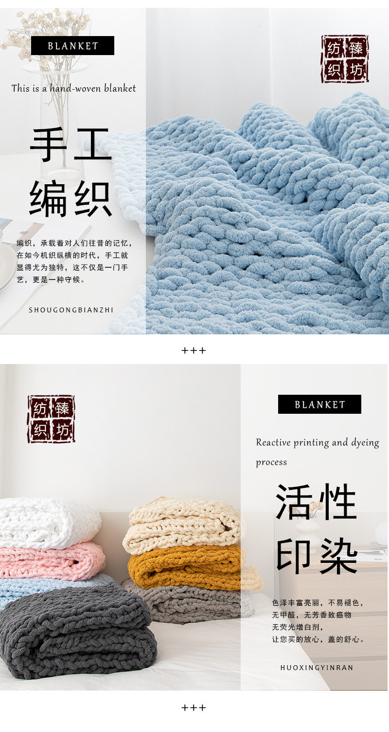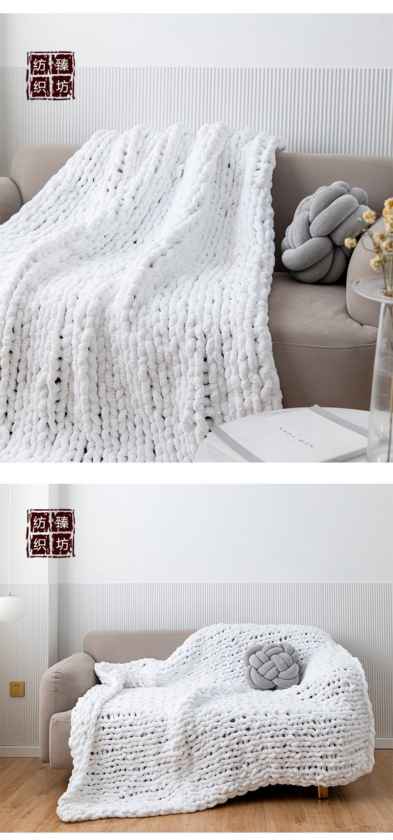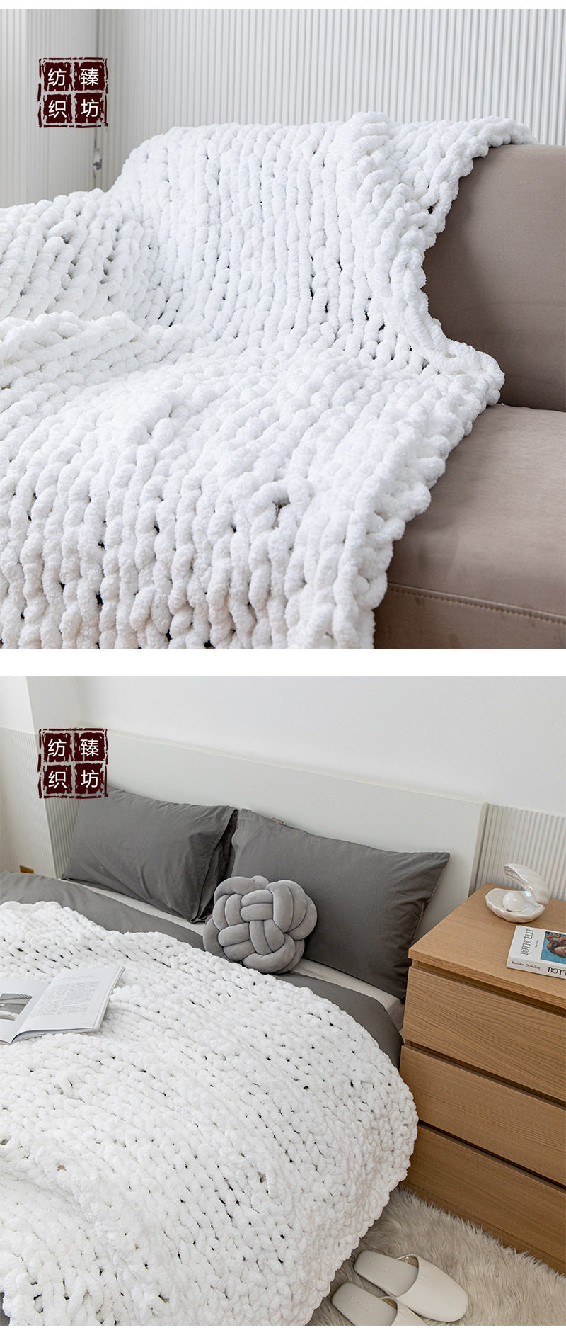 Handmade Thick Thread Blanket, Simple Woven Fishbone Style Knitted Blanket, Bedroom Sofa Cover Blanket, Air-Conditioned Lunch Blanket and Towel Home