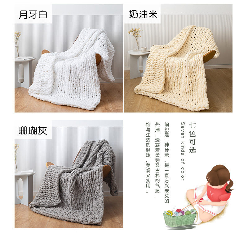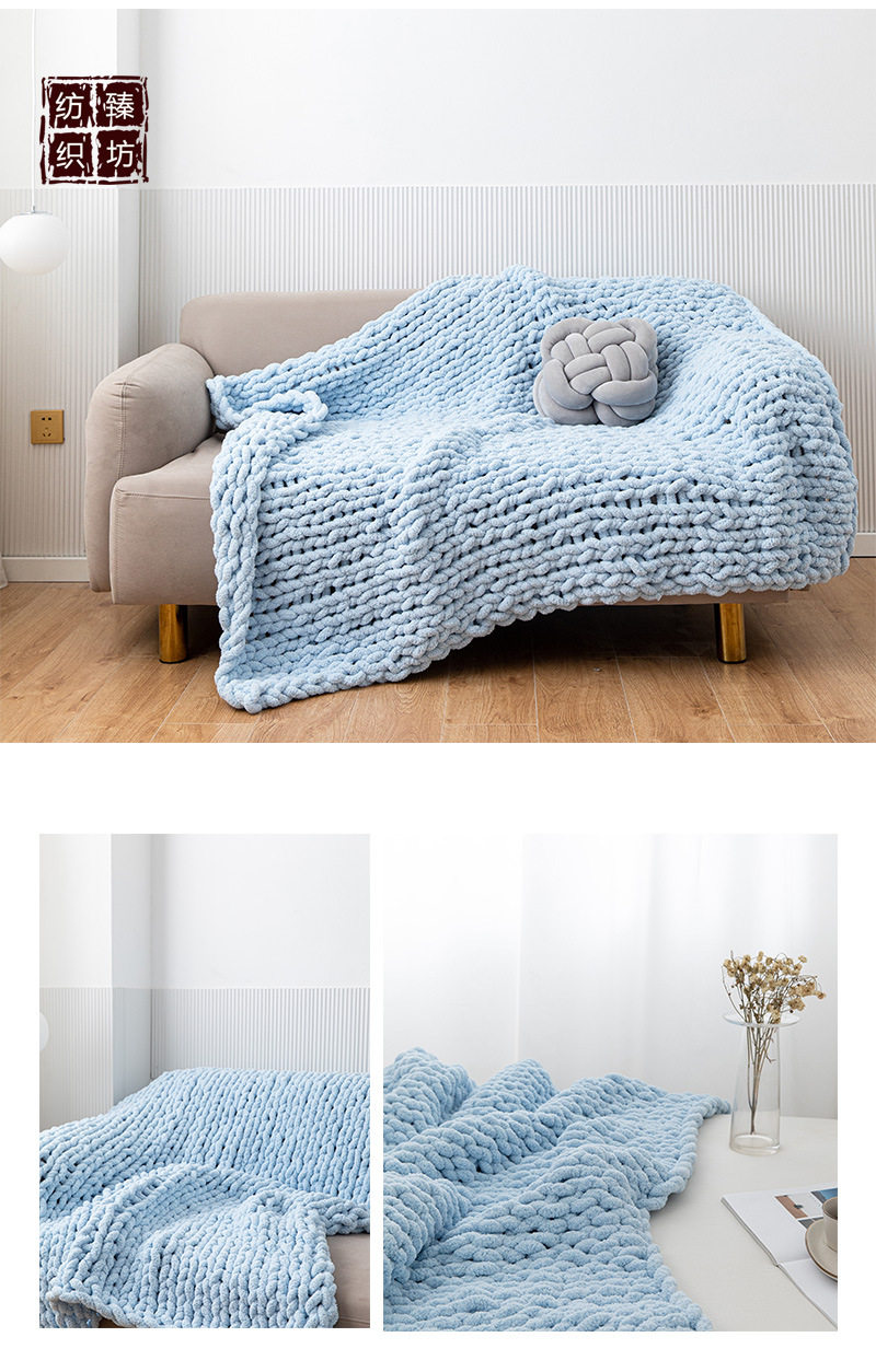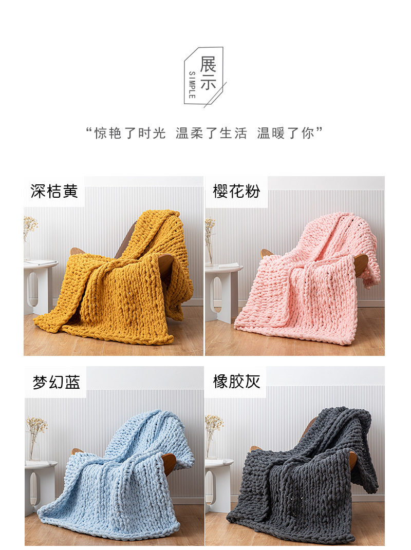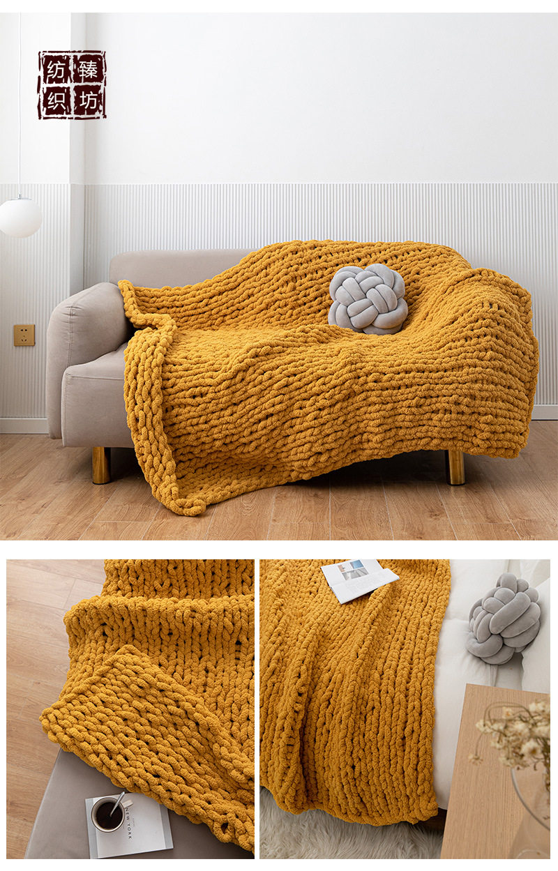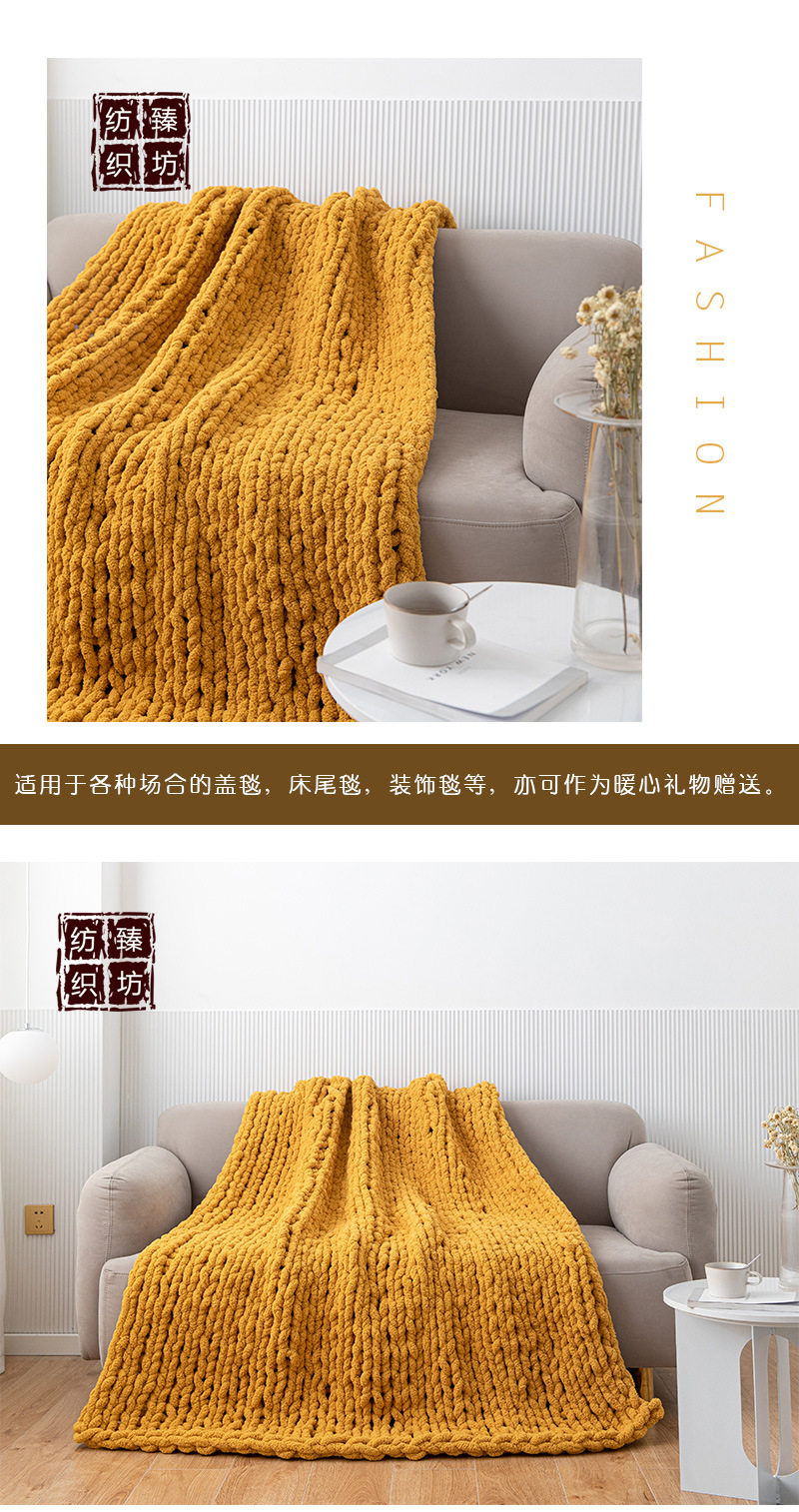Handmade Thick Thread Blanket, Simple Woven Fishbone Style Knitted Blanket, Bedroom Sofa Cover Blanket, Air-Conditioned Lunch Blanket and Towel Home