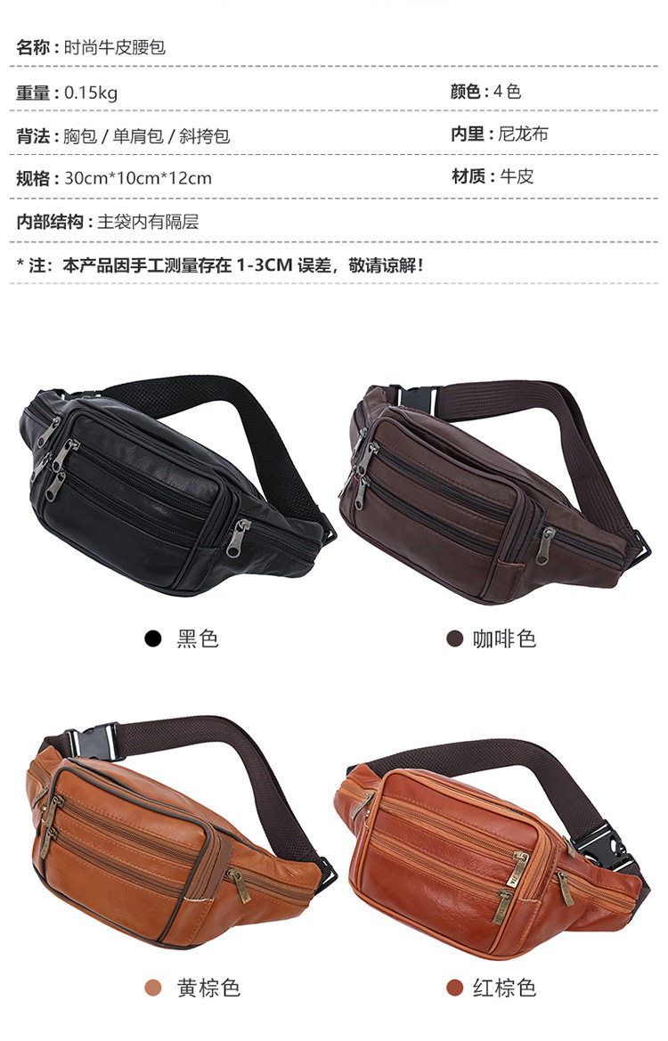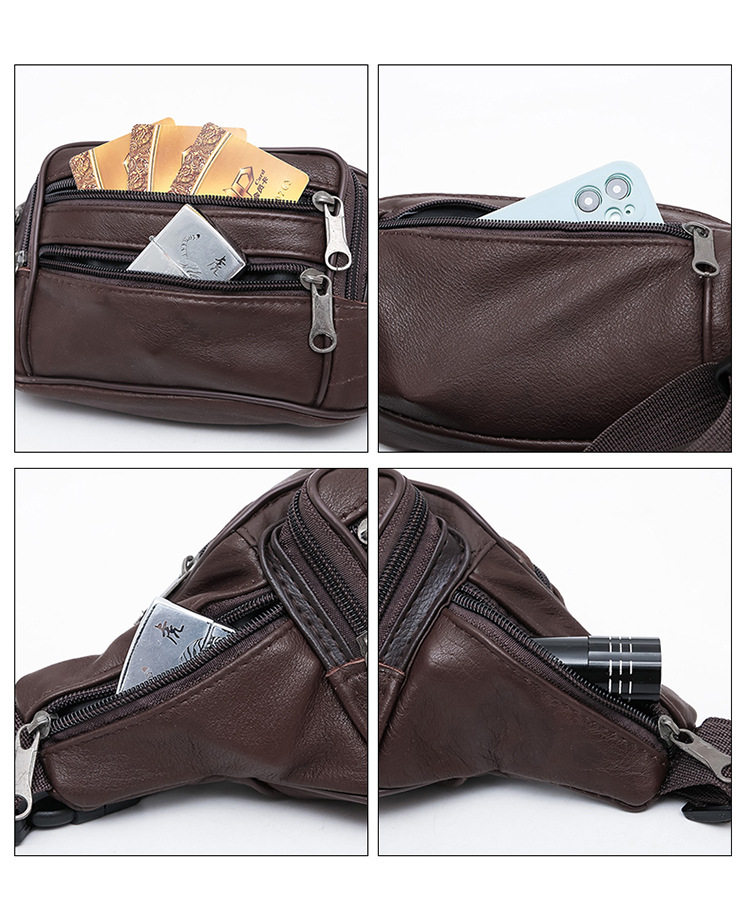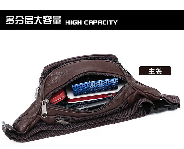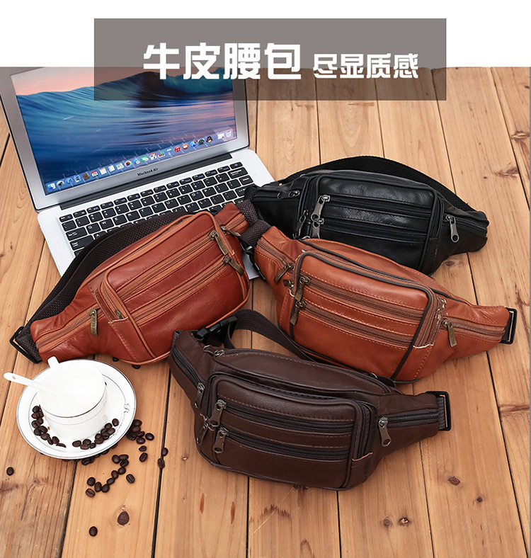Men's Waist Bag New Top Leather Business Coin Purse Cowhide Waist Bag Large Capacity Yoga Sports Bag Waist Bag