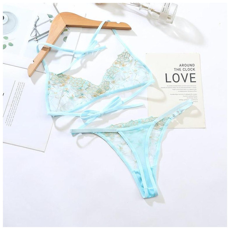 New Mesh Embroidered Interior French Underwear Strap Bra suit Less Women Sexy Cute European and American 672AA