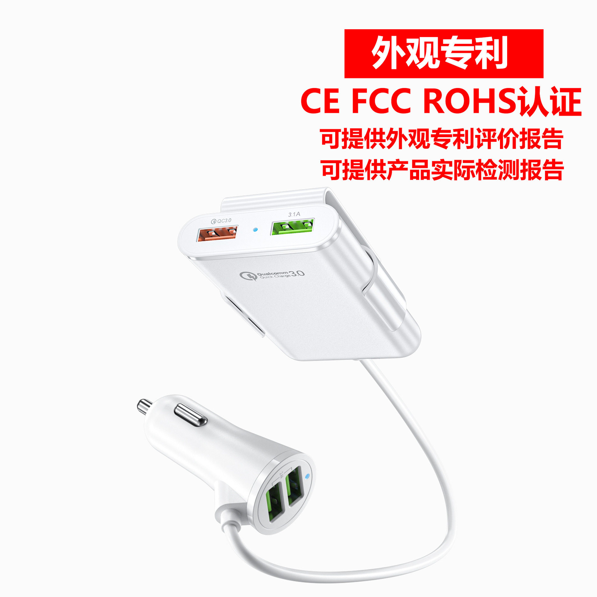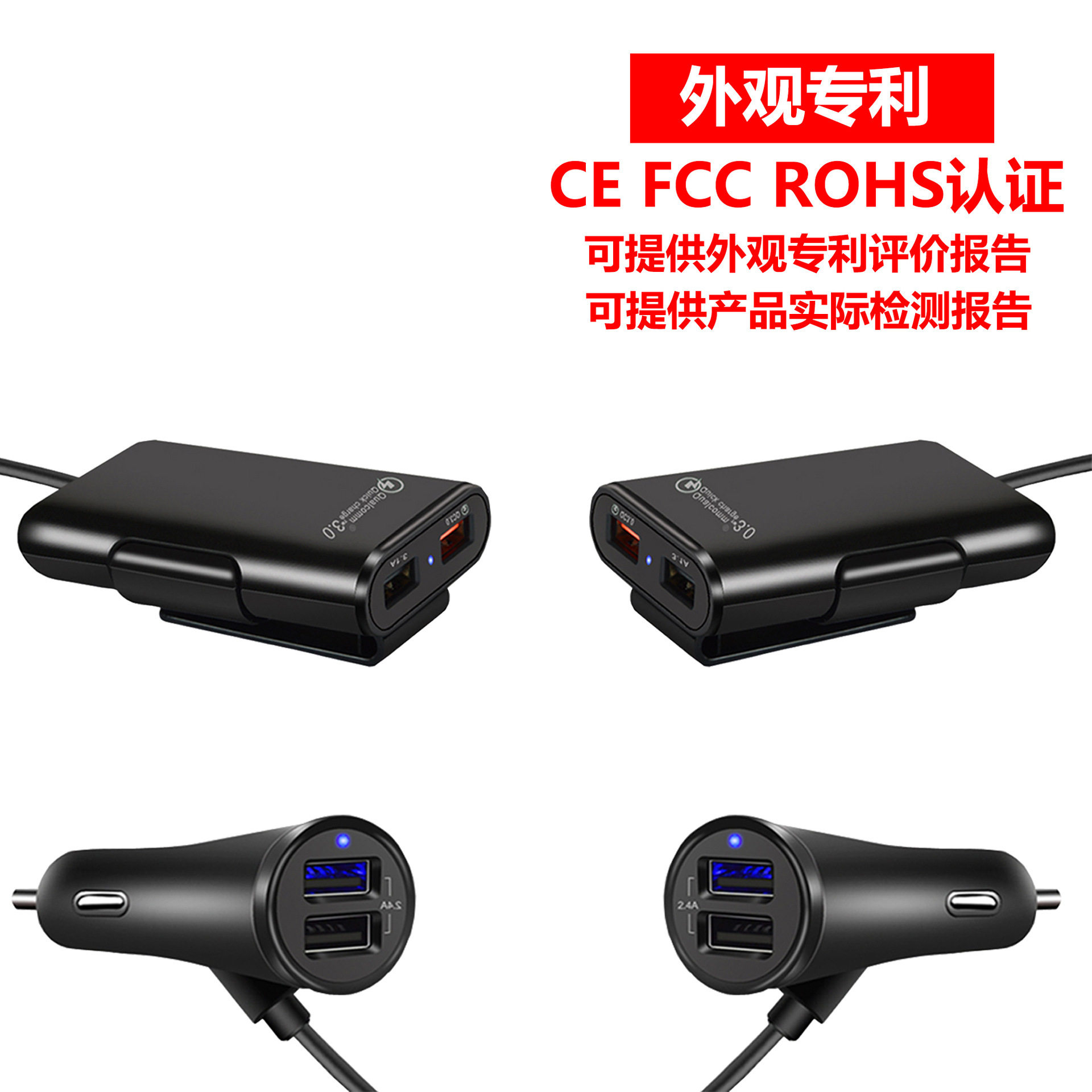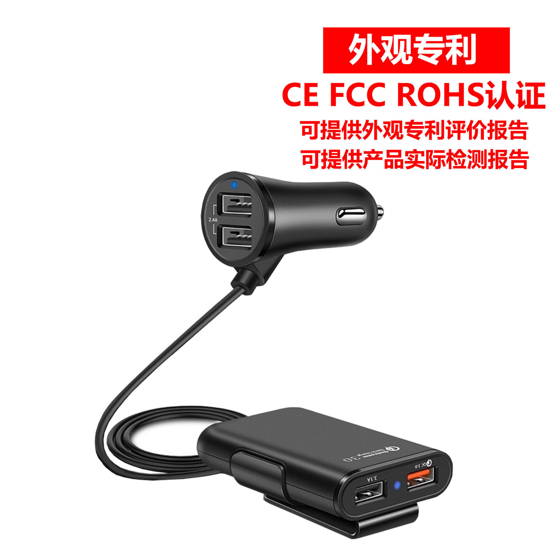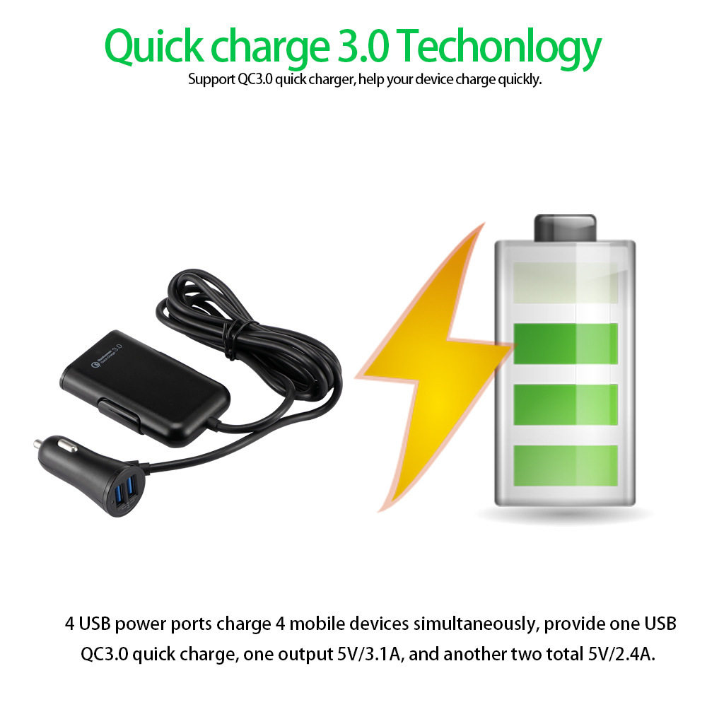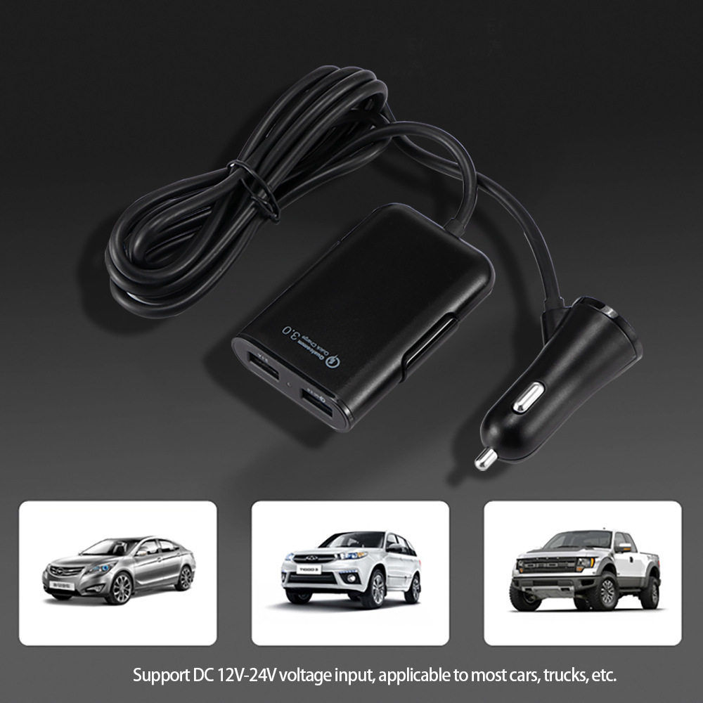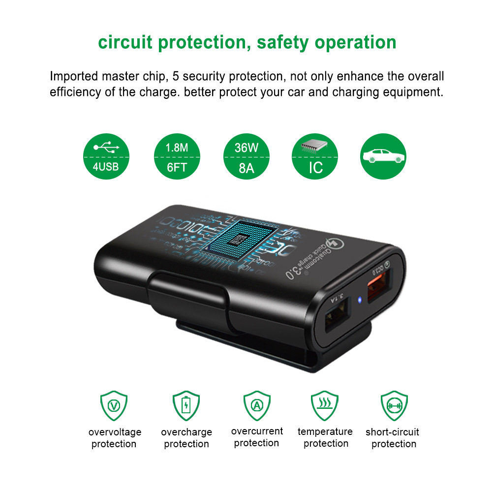 Fast car charger fast charge Shenzhen manufacturer rear seat charger QC3.0 four-port car charger qc3.0 5v8a