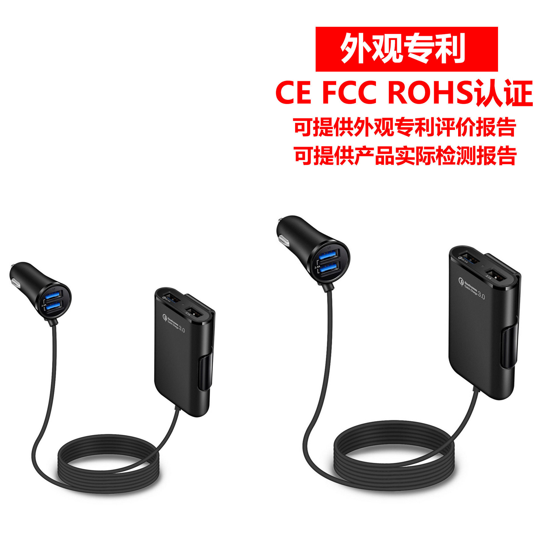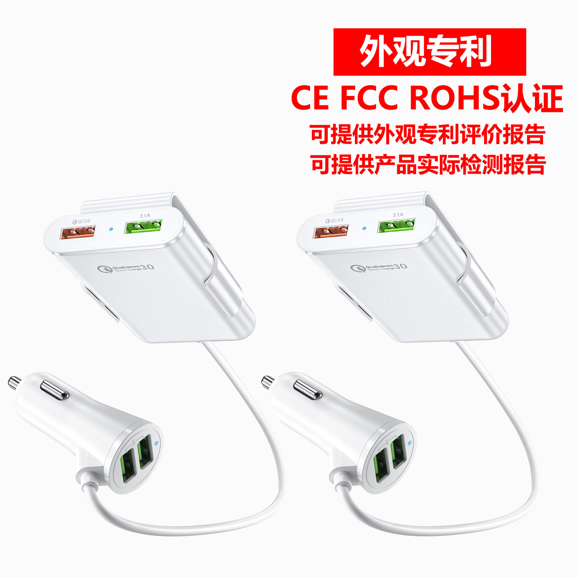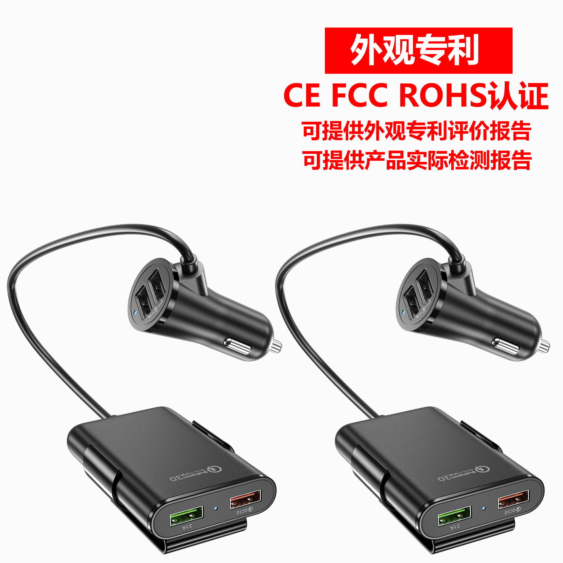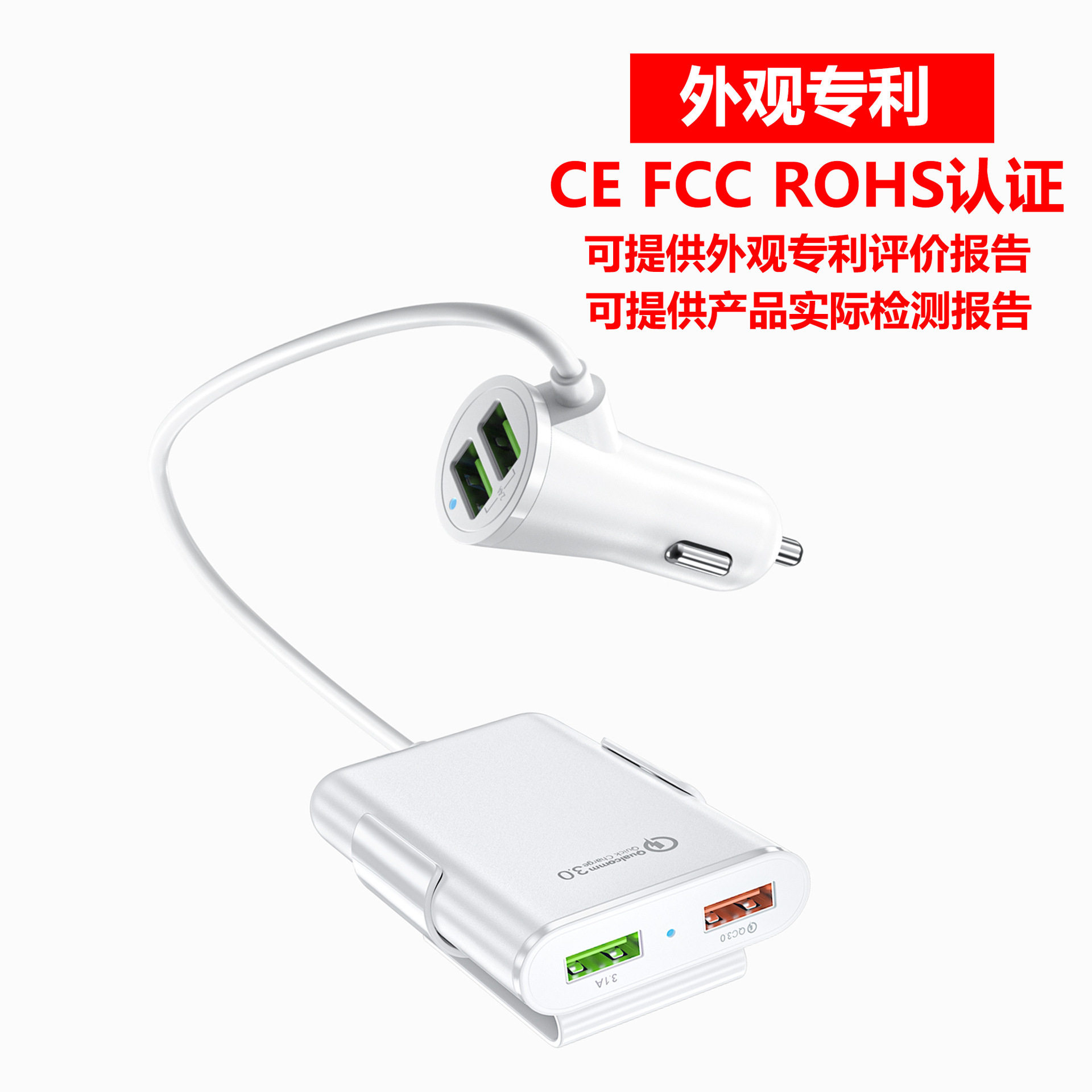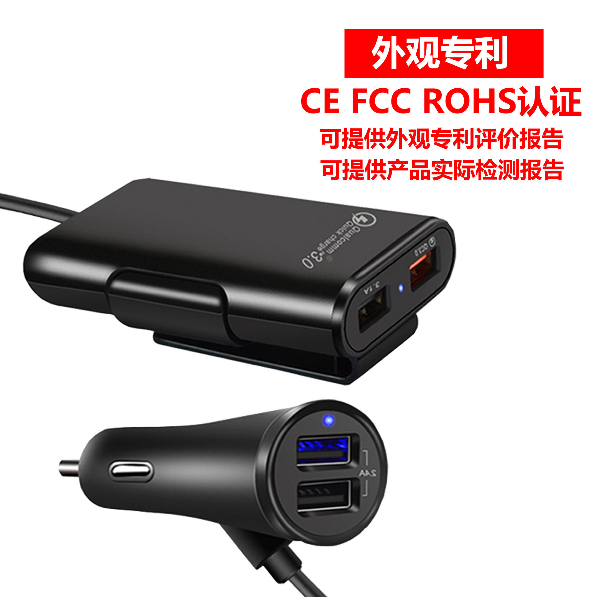 Fast car charger fast charge Shenzhen manufacturer rear seat charger QC3.0 four-port car charger qc3.0 5v8a