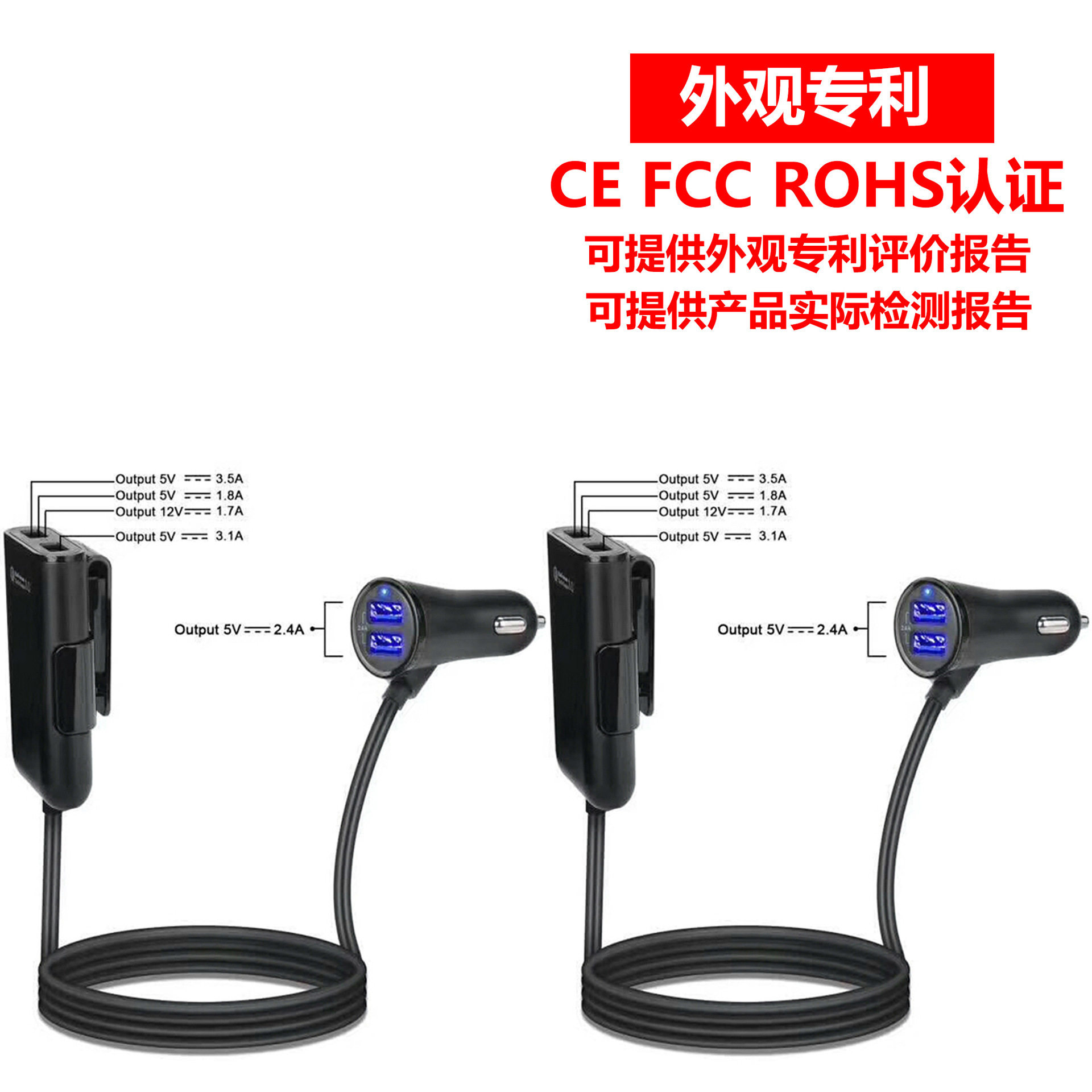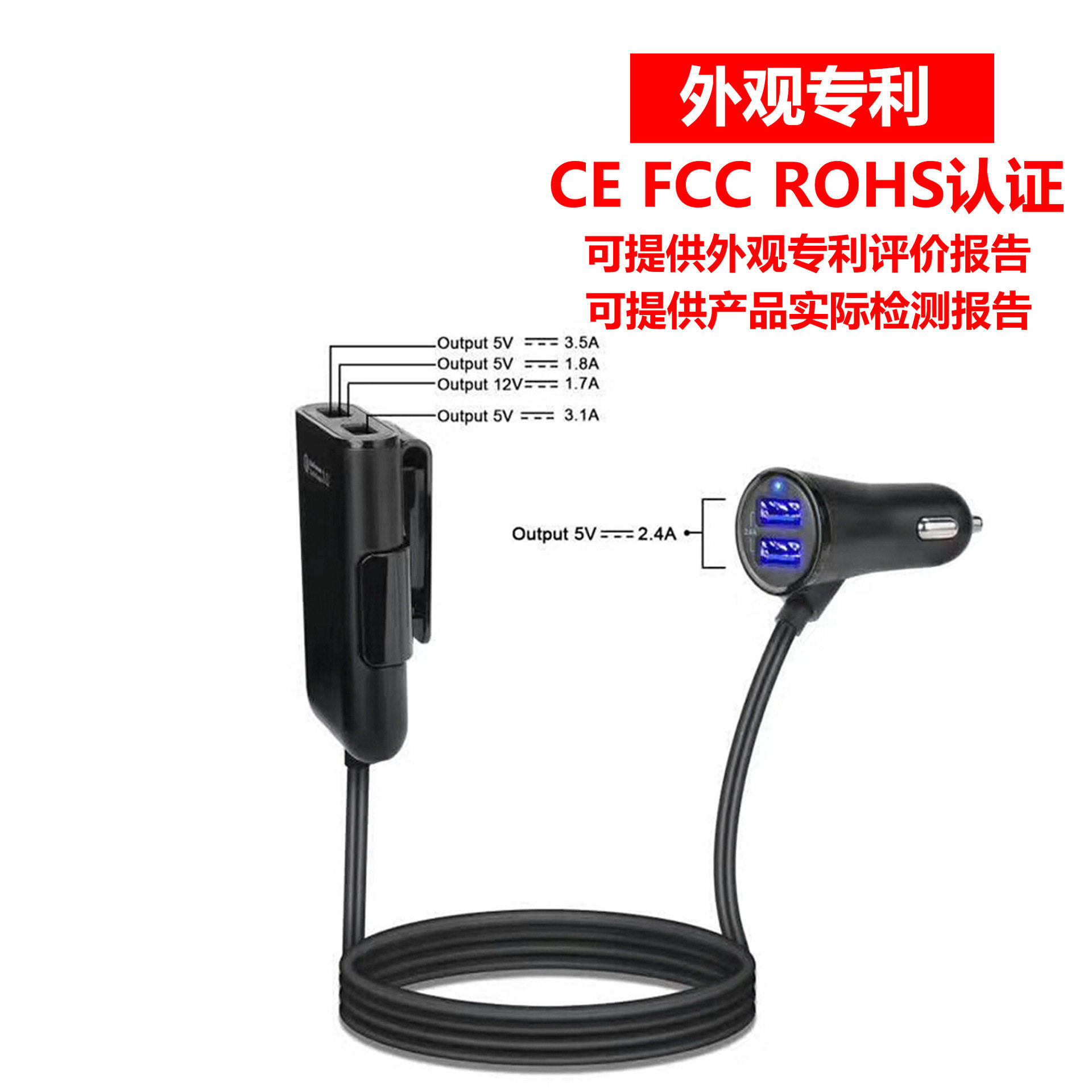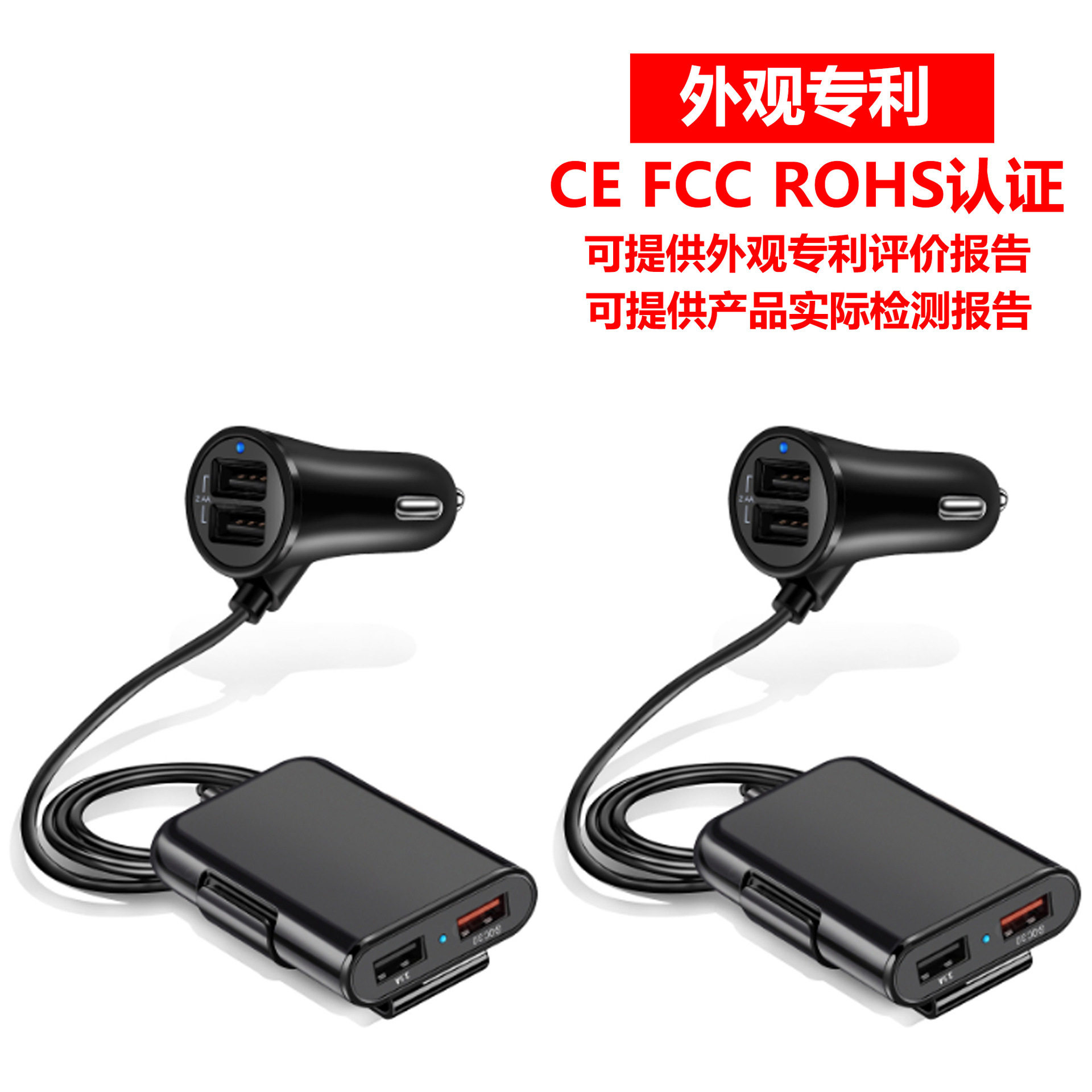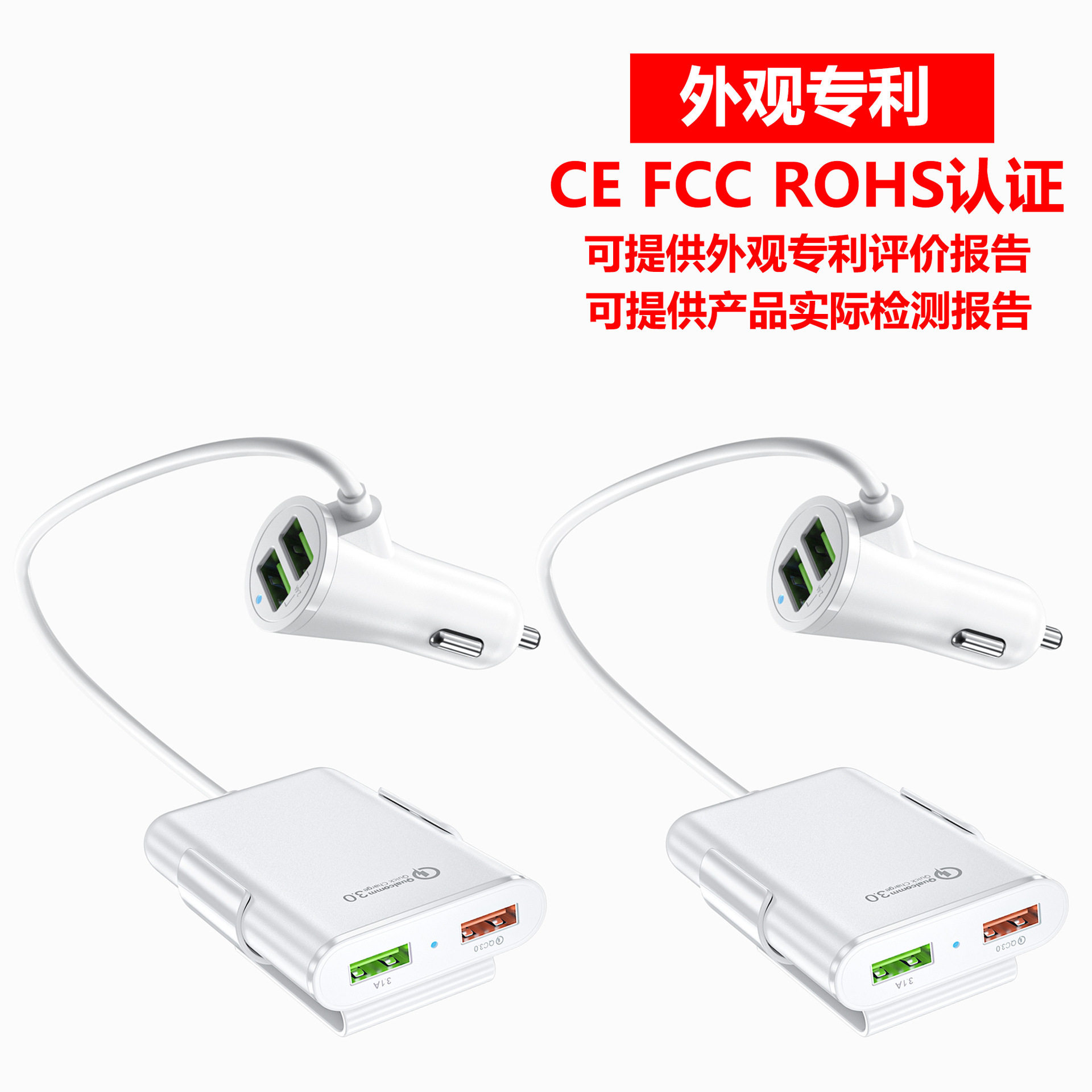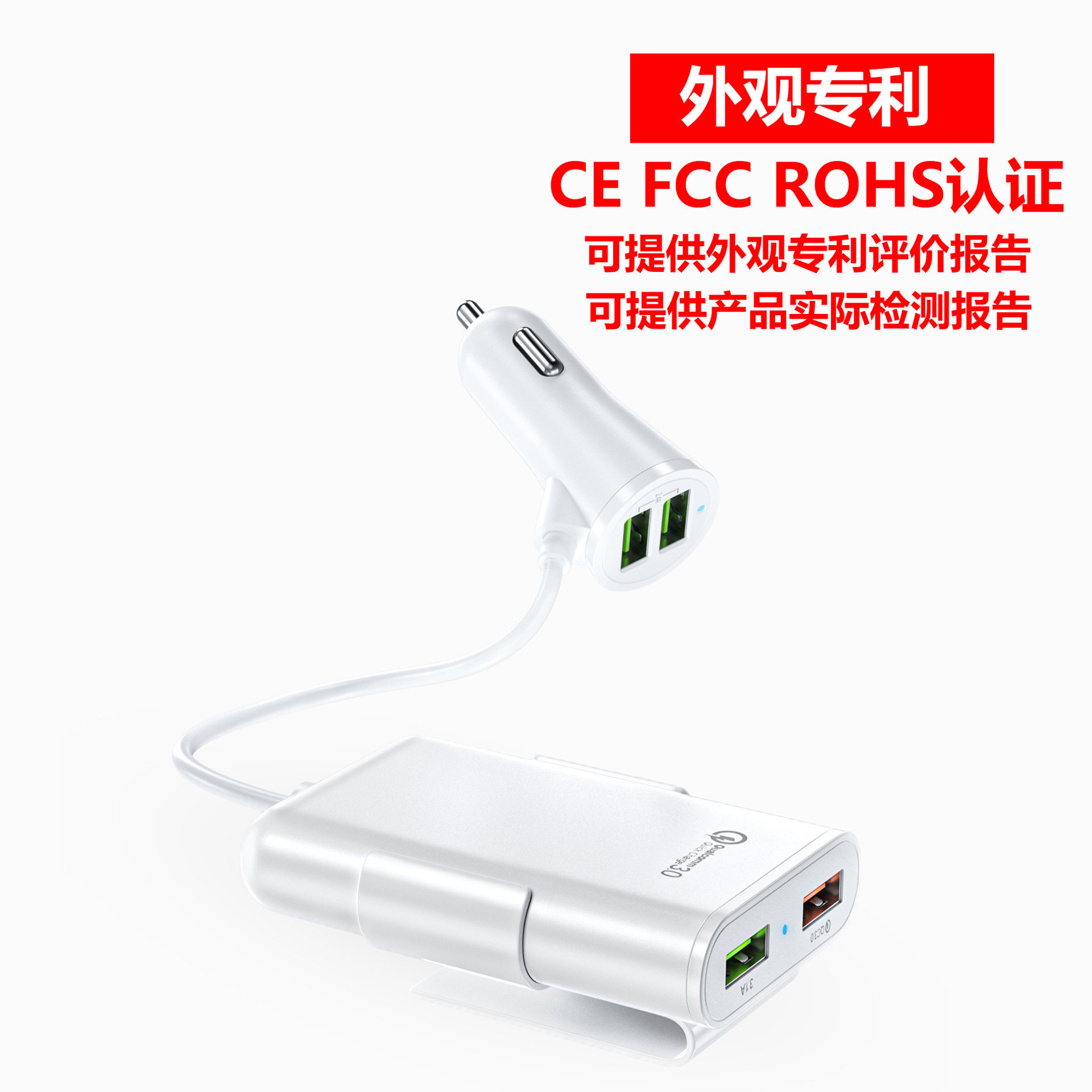 Fast car charger fast charge Shenzhen manufacturer rear seat charger QC3.0 four-port car charger qc3.0 5v8a