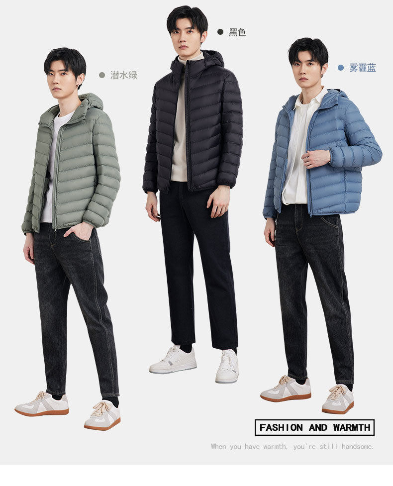 Wholesale and Dropshipping of Lightweight down Jackets for Men with Hood, 90% Down, Korean Style, Casual, Plus Size Jackets