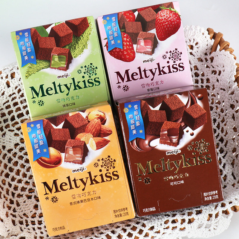 | Packaging specifications | Snow kiss grapefruit flavor 55g/box,Snow kiss cocoa flavor 55g/box,Snow kiss matcha flavor 55g/box,Snow kiss strawberry flavor 55g/box,Snow kiss milk flavor 55g/box,Snow kiss italian almond hazelnut flavor 55g/box,Snow kiss grapefruit flavor 29g*2 boxes,Meiji chocolate dark chocolate 65g/plate,Meiji chocolate, extra rich milk, 65g bar,Meiji chocolate dark chocolate 65g/bar,Meiji chocolate milk 65g/plate,Japanese meiji chocolate beans mini 32g,Japanese matsuo strawberry milk sandwich chocolate 10.6g*5 pieces/set,Japanese matsuo watermelon flavored double sandwich chocolate 9.4g*5 pieces/set,Japanese matsuo matcha flavored glutinous rice sandwich chocolate 10.6g*5 pieces/set,Japanese matsuo cookies white chocolate 10g*5 pieces/set,Japanese matsuo milk sandwich chocolate 10.3g*5 pieces/set,Meiji fantasy chocolate beans 50g,Meiji chocolate doll milk chocolate beans 50g |