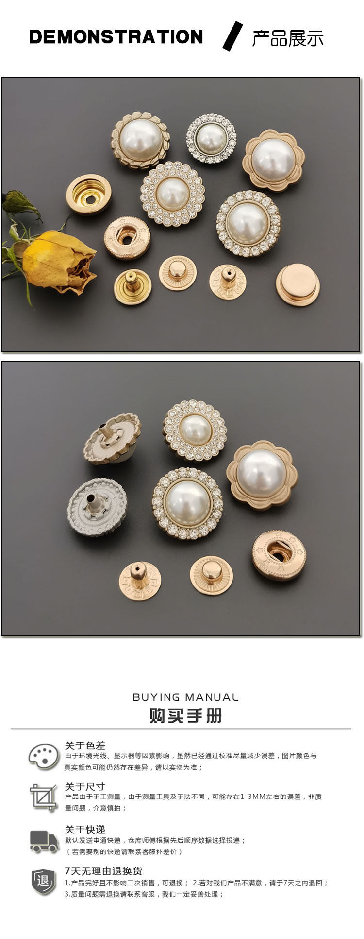 | Item No. | Metal diamond pearl snap buckle |