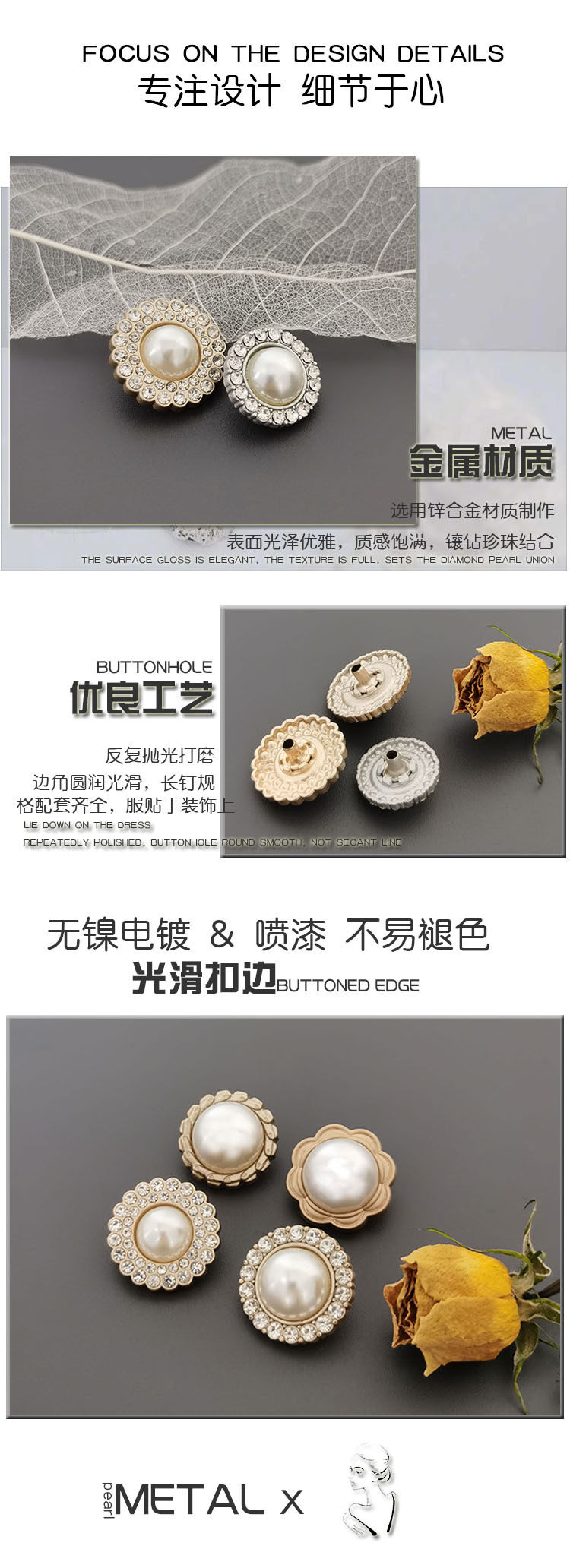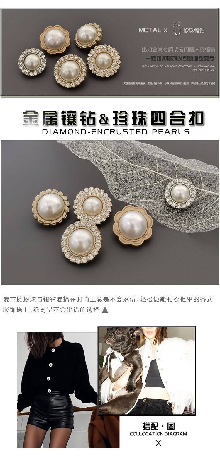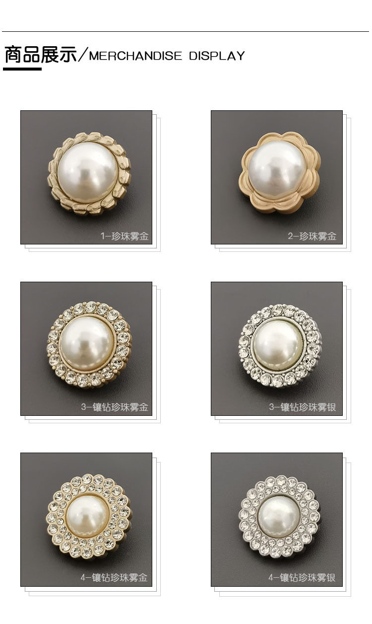 Diamond-encrusted pearl four-button overcoat suit knitted decorative buckle snap button pattern female buckle metal Pearl four-button
