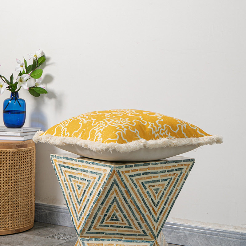 New European and American style round tassel edge decoration cotton and linen printed pillow case home decoration sofa cushion cover
