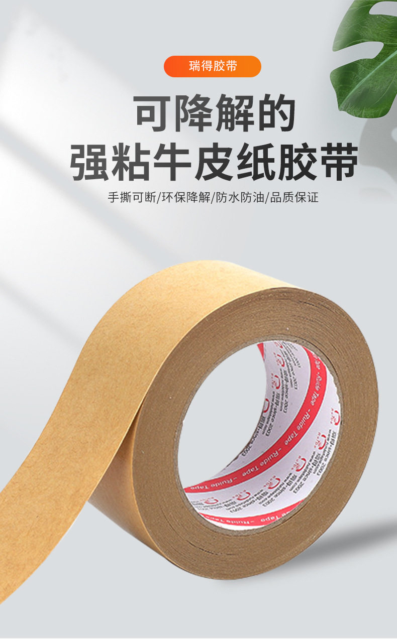 Kraft Paper Tape Factory High Adhesive Strength Film Writable Clamps Degradable Sealing Box Packing Buffalo Leather Tape