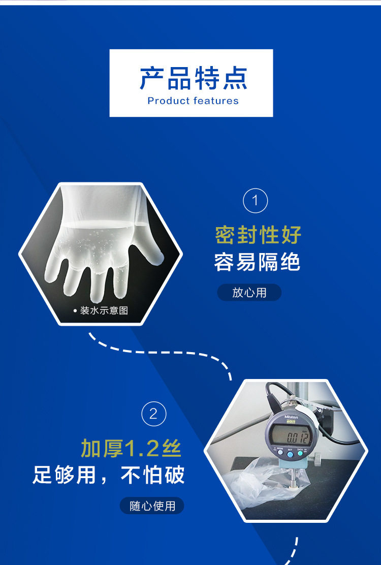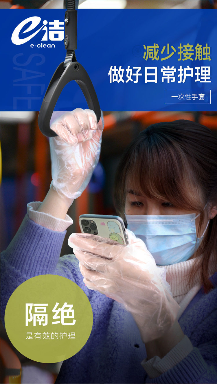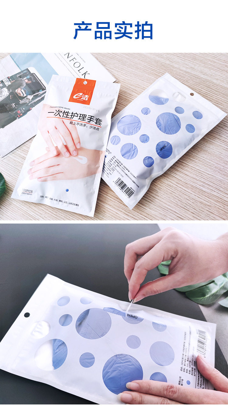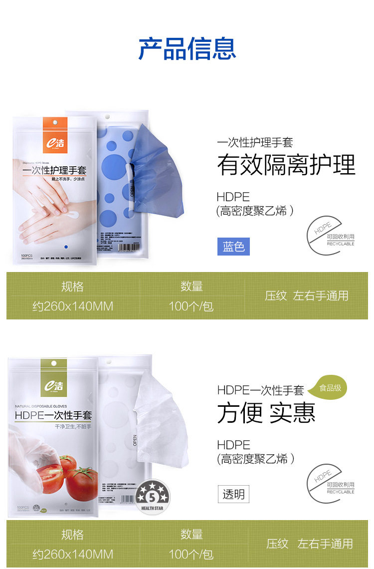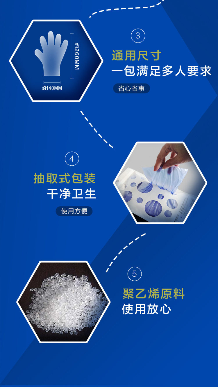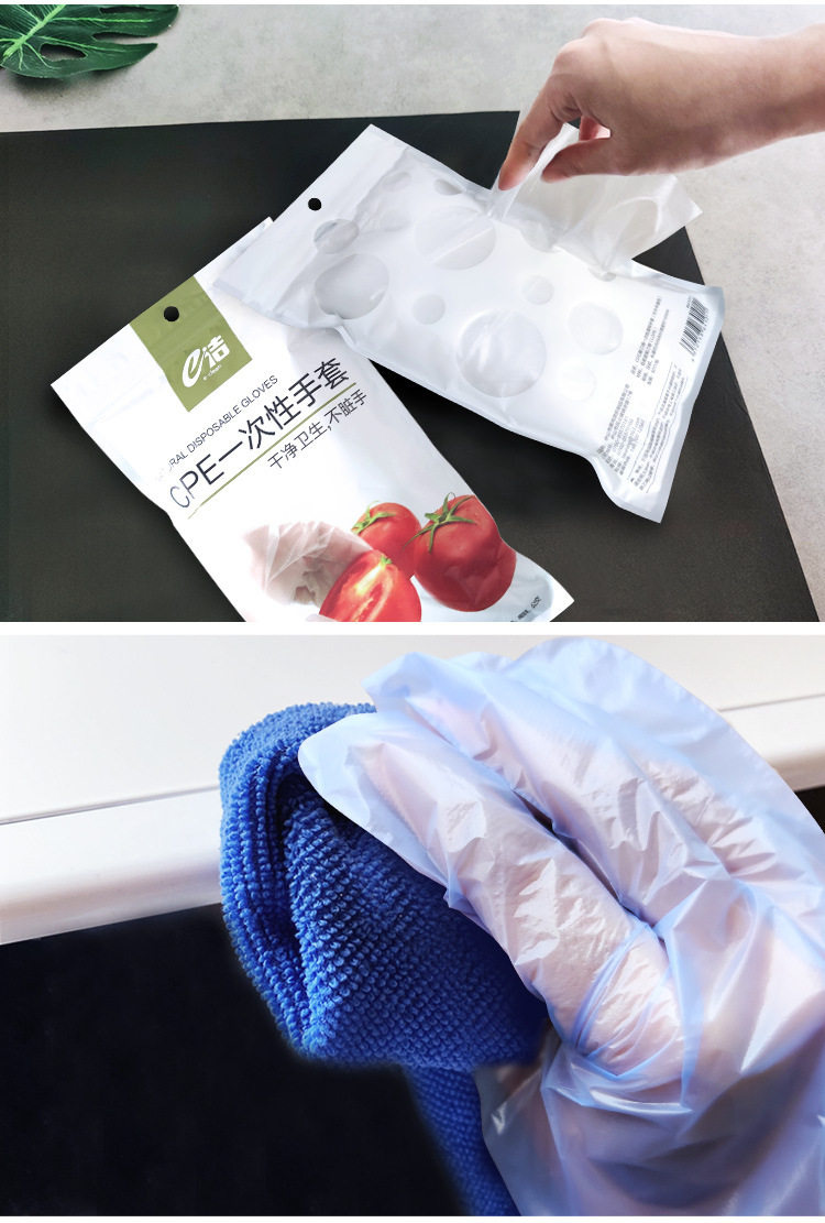 E-clean disposable plastic gloves removable catering transparent film PE kitchen isolation inspection Blue 100