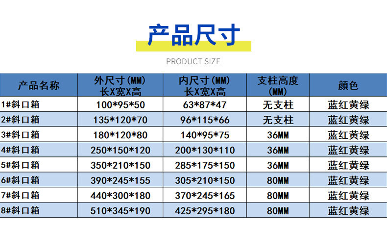 | Specifications and models | 95*100*50mm blue/thick new material,95*100*50mm red/thick new material,95*100*50mm yellow/thick new material,95*100*50mm green/thick new material,135*120*70mm blue/thick new material,135*120*70mm red/thick new material,135*120*70mm yellow/thick new material,135*120*70mm green/thick new material,180*120*80mm blue/thick new material,180*120*80mm red/thick new material,180*120*80mm yellow/thick new material,180*120*80mm green/thick new material,250*150*120mm blue/thick new material,250*150*120mm red/thick new material,250*150*120mm yellow/thick new material,250*150*120mm green/thick new material,350*210*150mm blue/thick new material,350*210*150mm red/thick new material,350*210*150mm yellow/thick new material,350*210*150mm green/thick new material,390*245*155mm blue/thick new material,390*245*155mm red/thick new material,390*245*155mm yellow/thick new material,390*245*155mm green/thick new material,440*300*180mm blue/thick new material,440*300*180mm red/thick new material,440*300*180mm yellow/thick new material,440*300*180mm green/thick new material,510*345*190mm blue/thick new,510*345*190mm red/thick new,510*345*190mm yellow/thick new,510*345*190mm green/thick new,620*380*220mm blue/thick new |