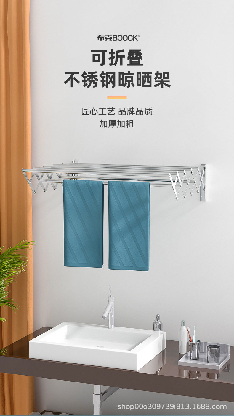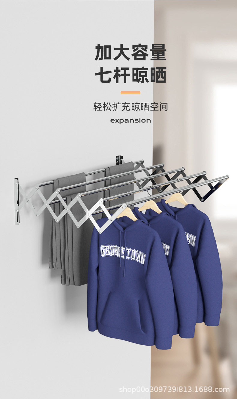 Cross-border Invisible Drying Rack Rod Wall Hanging Folding Balcony Telescopic Bay Window Drying Rack Stainless Steel Telescopic Towel Rack