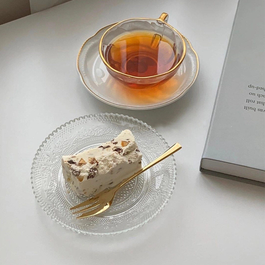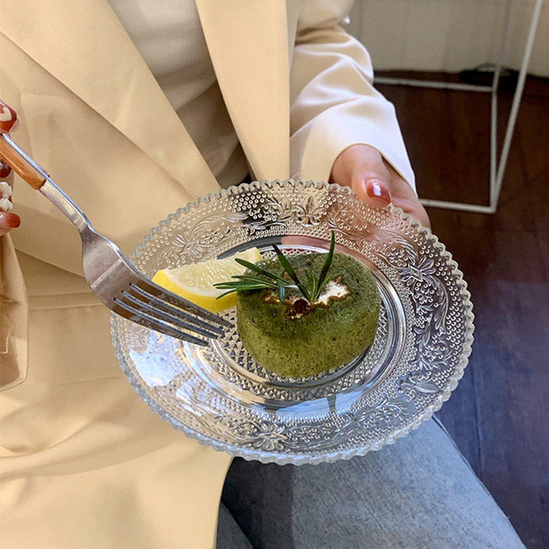 High-Quality Plate in Instagram Style, Dessert Plate for Cafes, Glass Plate with Vintage Relief, Round Cake Plate