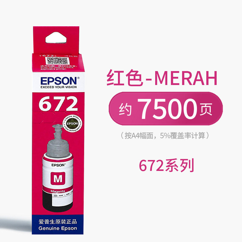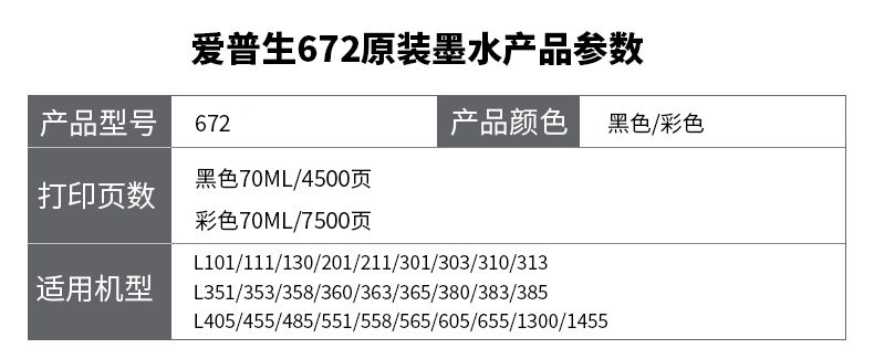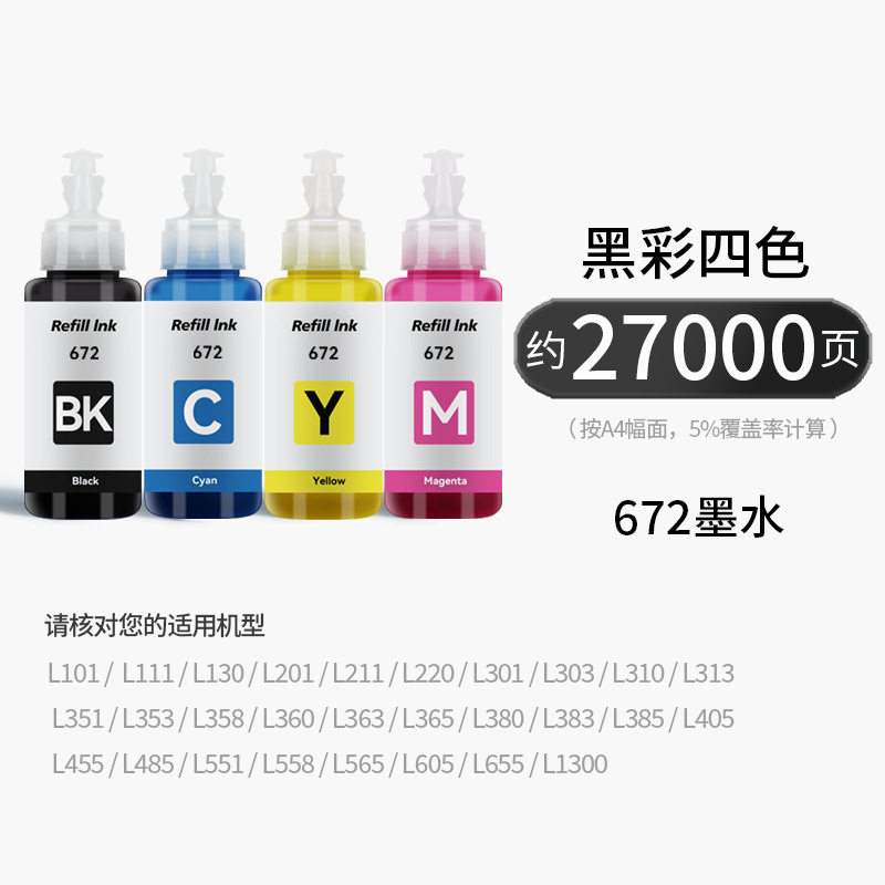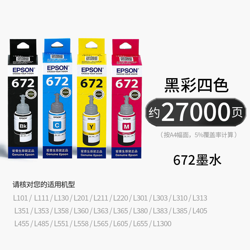 Epson Original 672 Ink L310L313L360L380L383L1300L565 Four-Color Continuous Printer