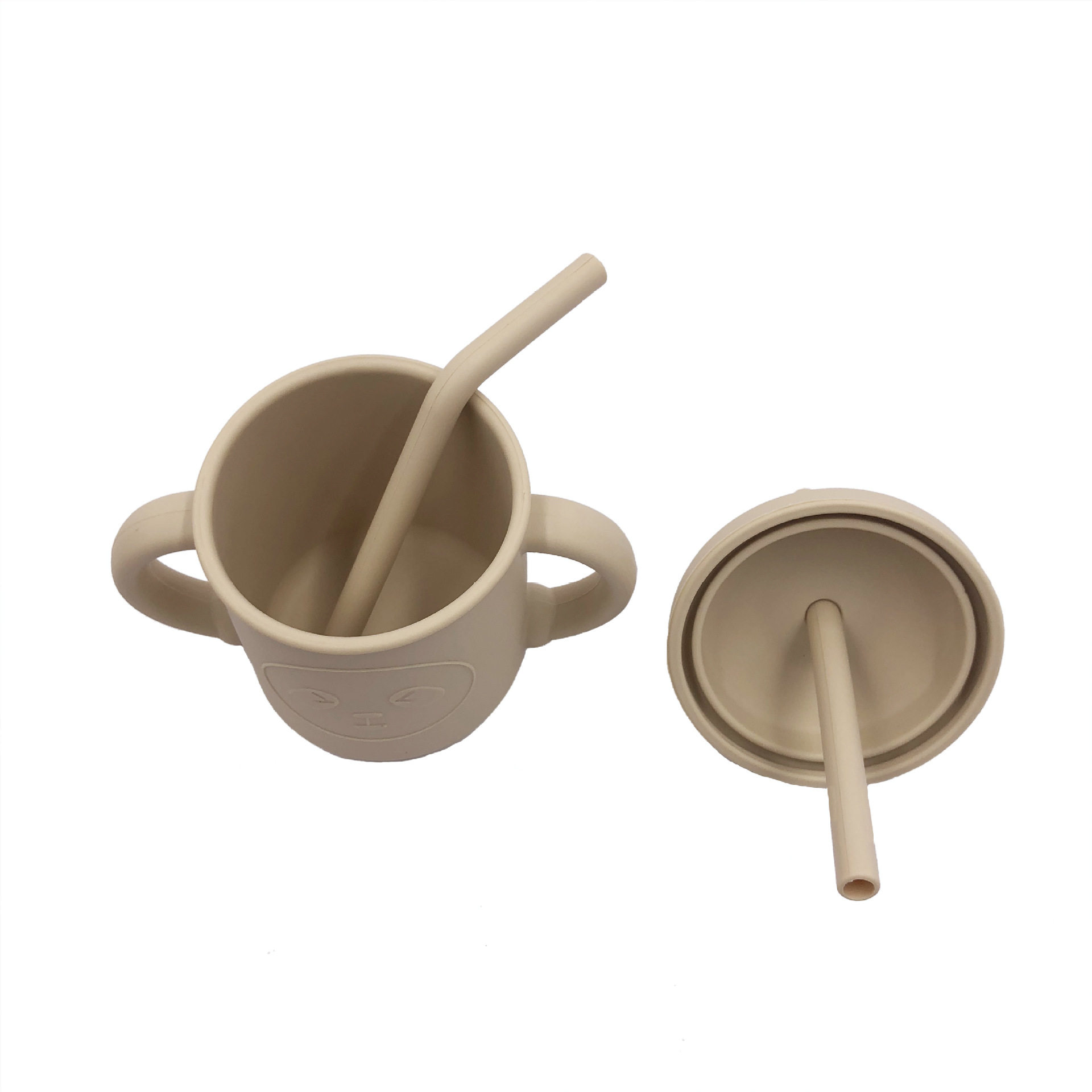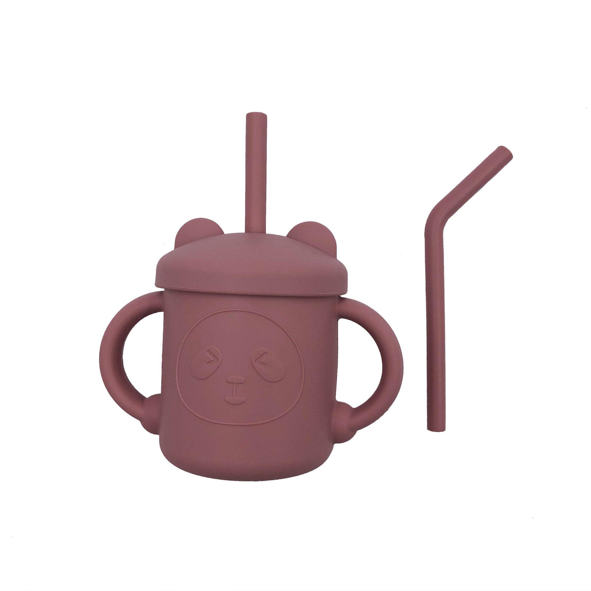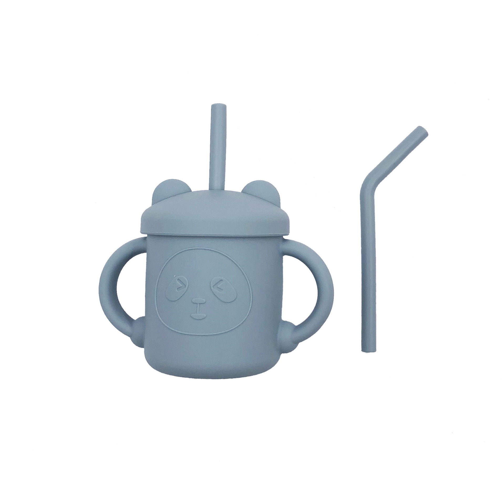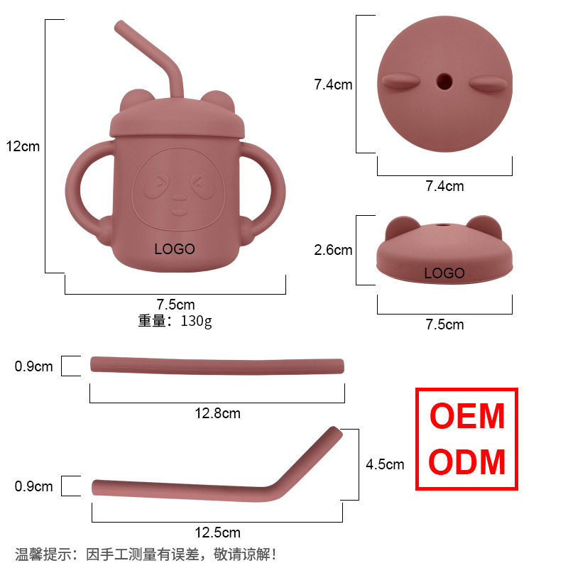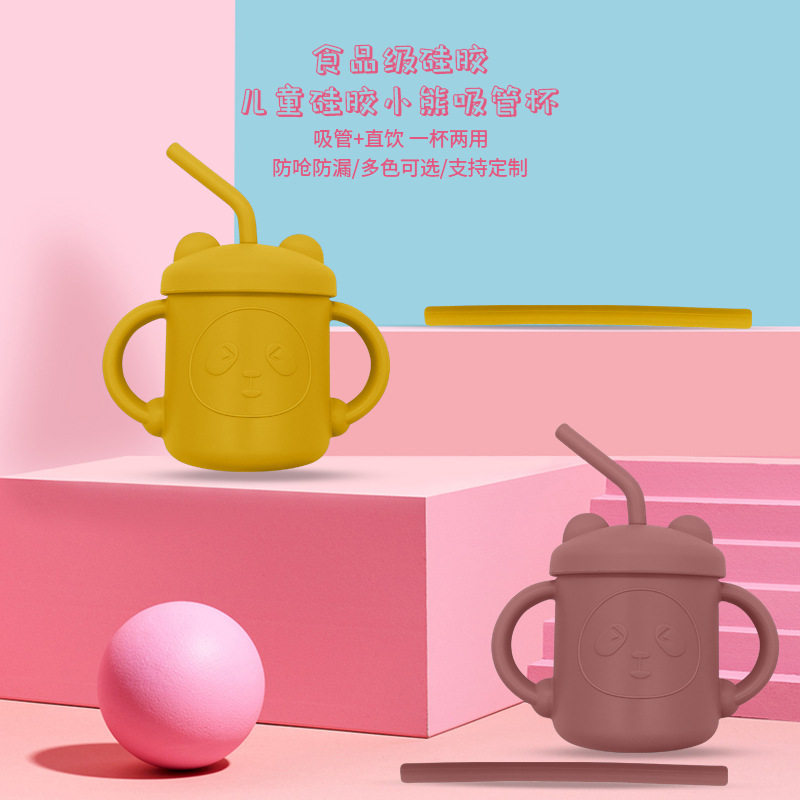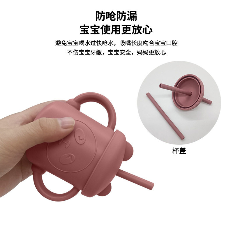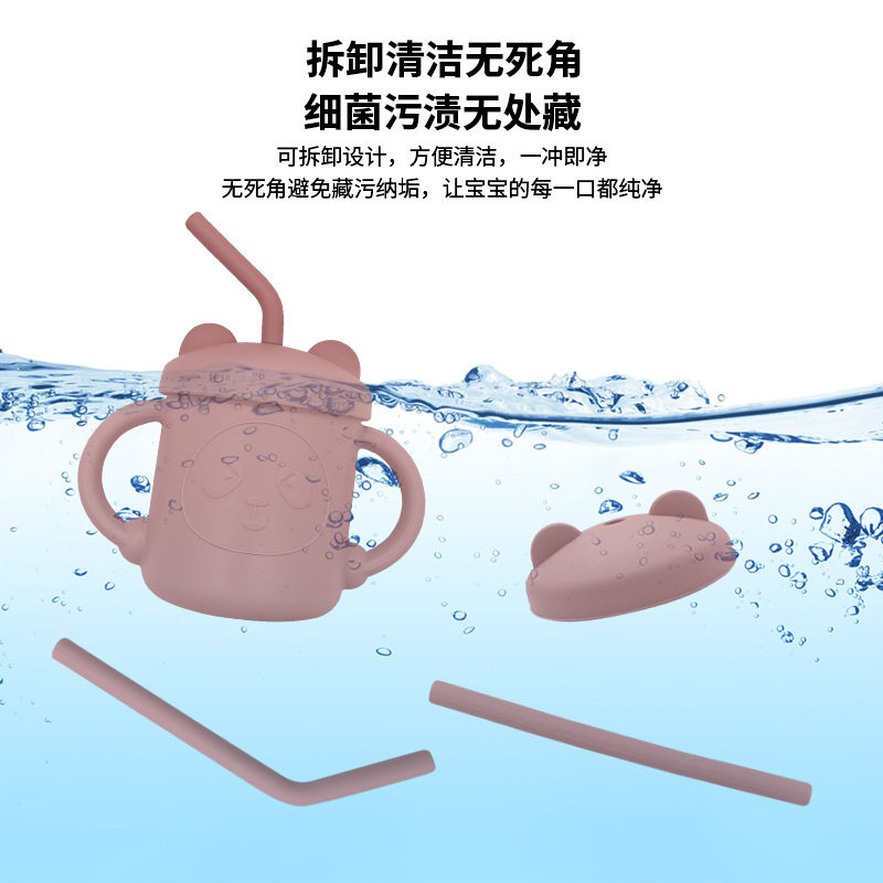 Silicone Water Cup with Double Handles and Double Straws, Cartoon Baby Learning Drinking Cup, Special Silicone Cup for Children and Babies, Tableware