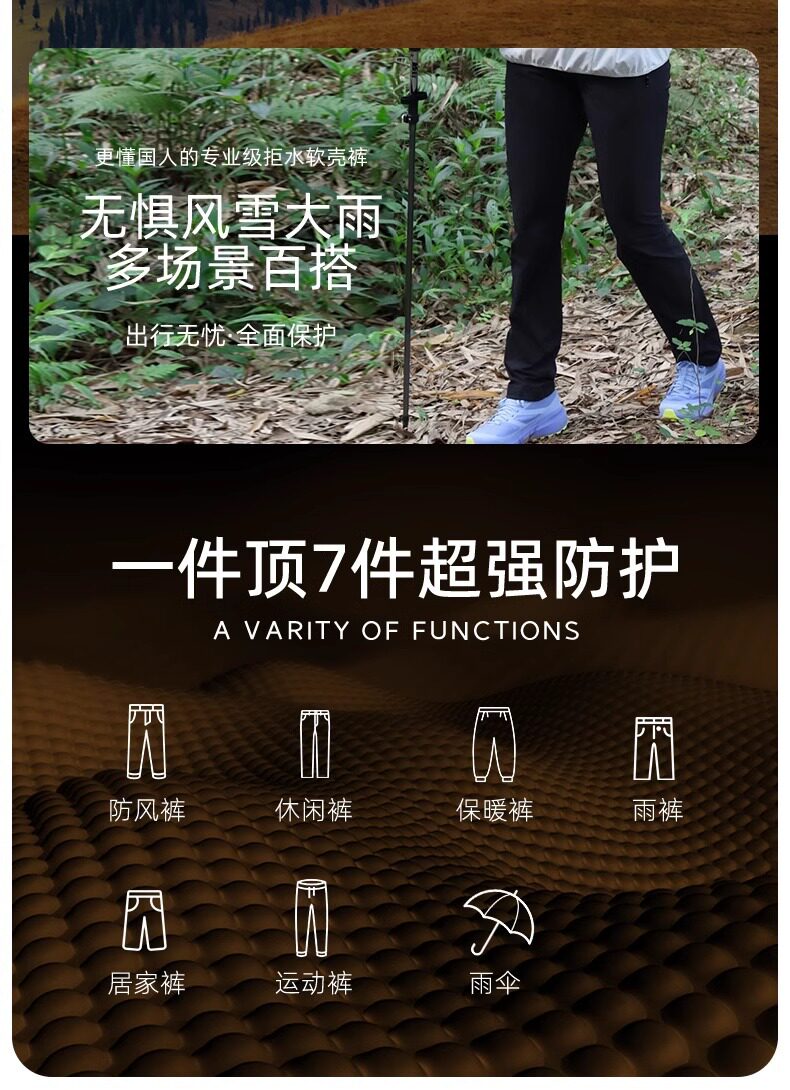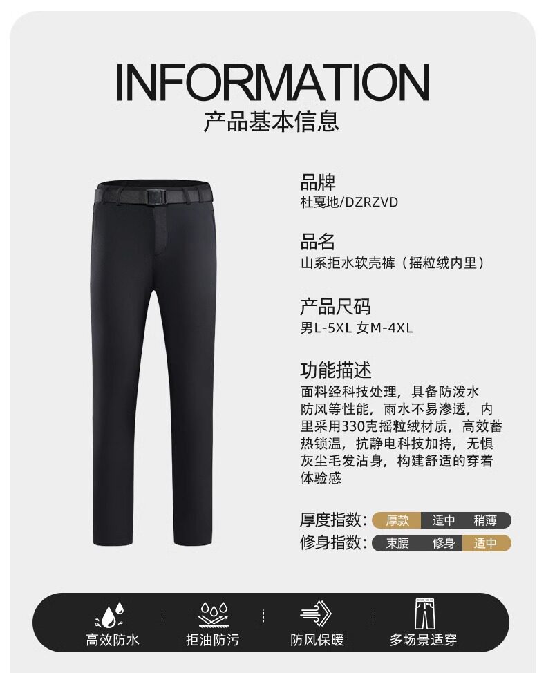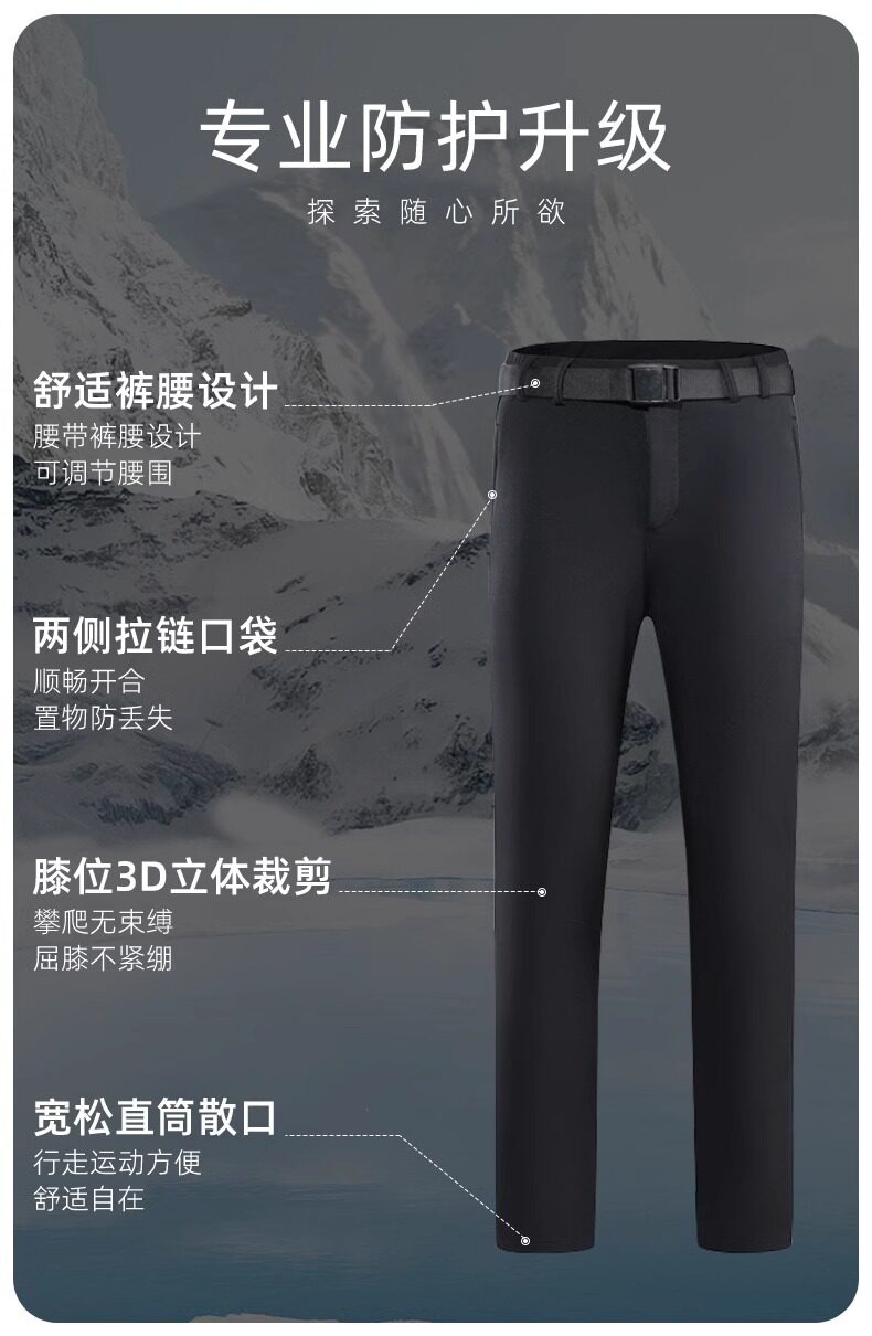 24 New Outdoor Mountaineering Pants Soft Shell Pants Men's Winter Warm Windproof Fleece Water-repellent fleece-lined Rush Pants Women