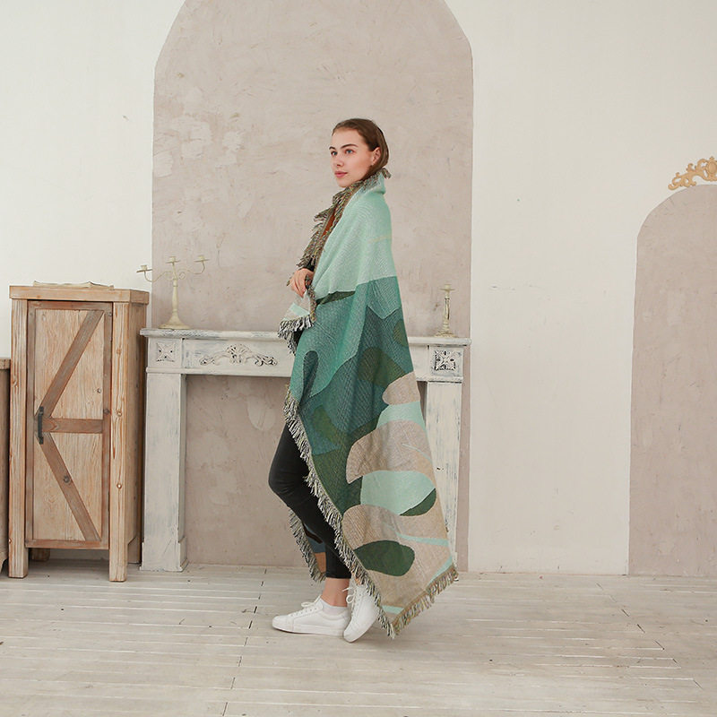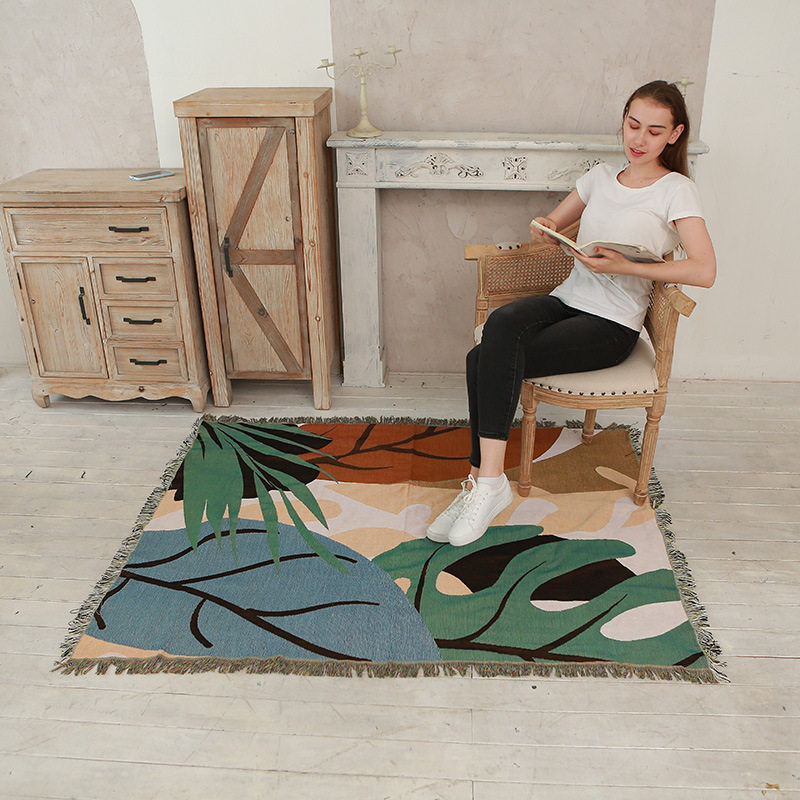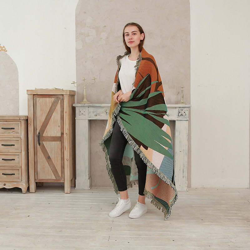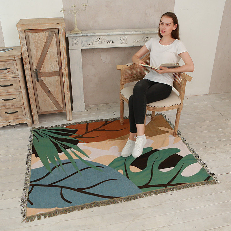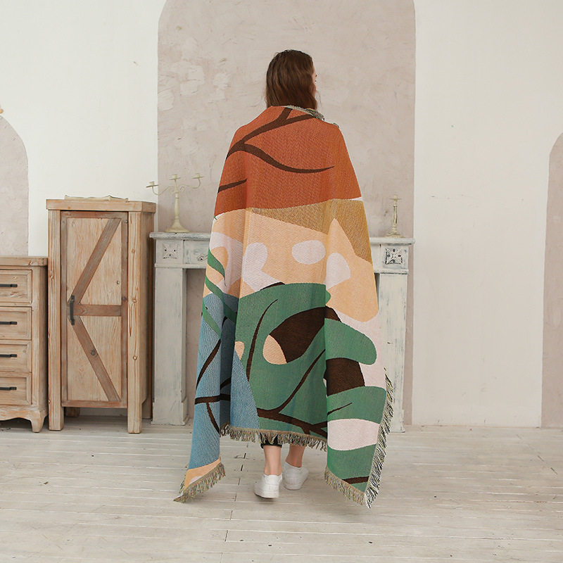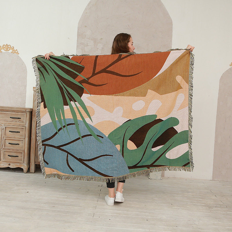 Nordic style color leaves line blanket full cover sofa towel sofa cover camping blanket ins sofa cover a generation of hair