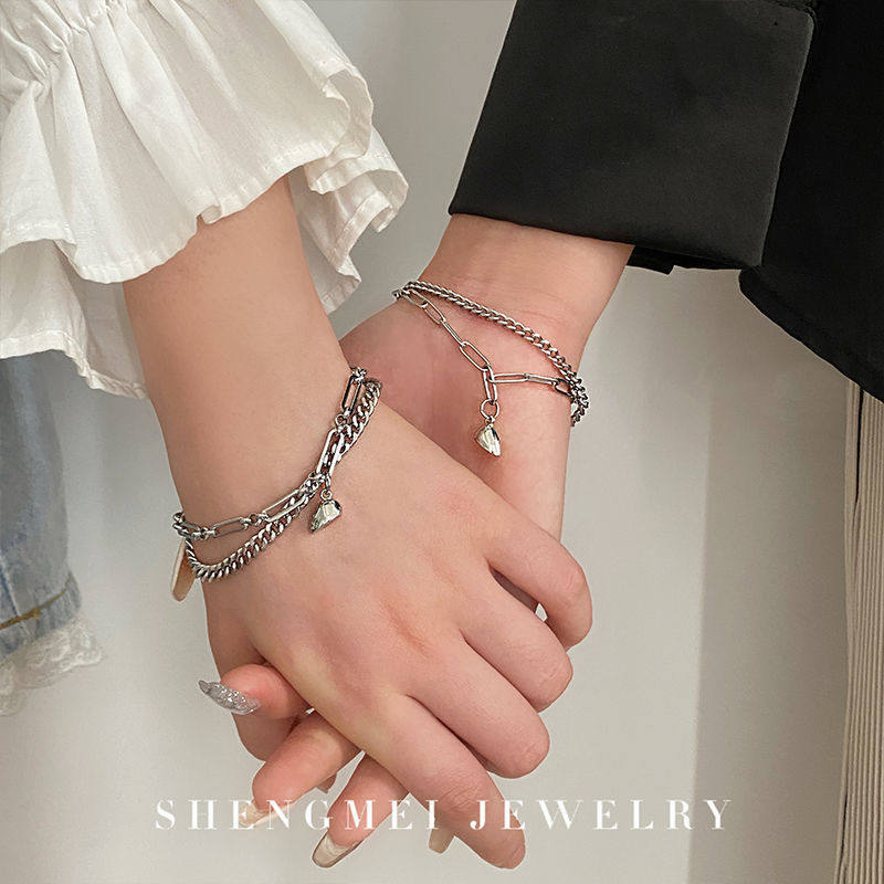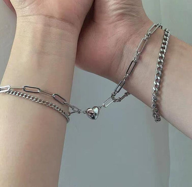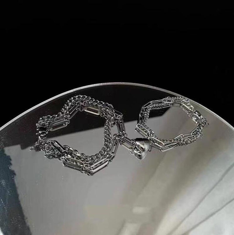 Cold Wind Bracelet Double Layer Stacked and Stitched Magnet Love Suction Bracelet Men's and Women's TikTok Explosions Couple's Hand Jewelry