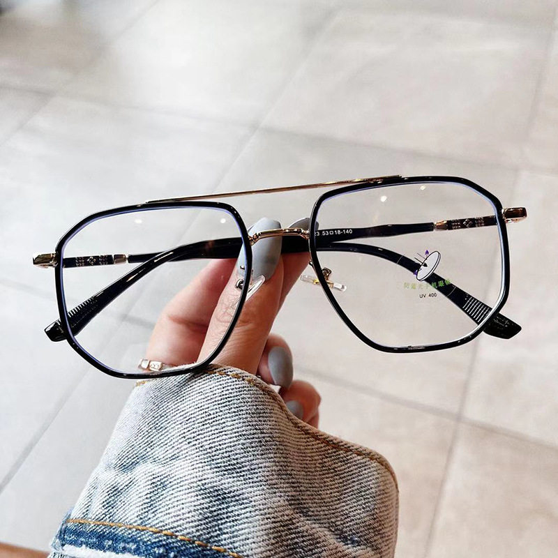 New TR Large Frame Anti-blue Glasses Korean Style Distinctive Double Nose Bridge Myopia Glasses Frame Retro Plain Plain Glasses